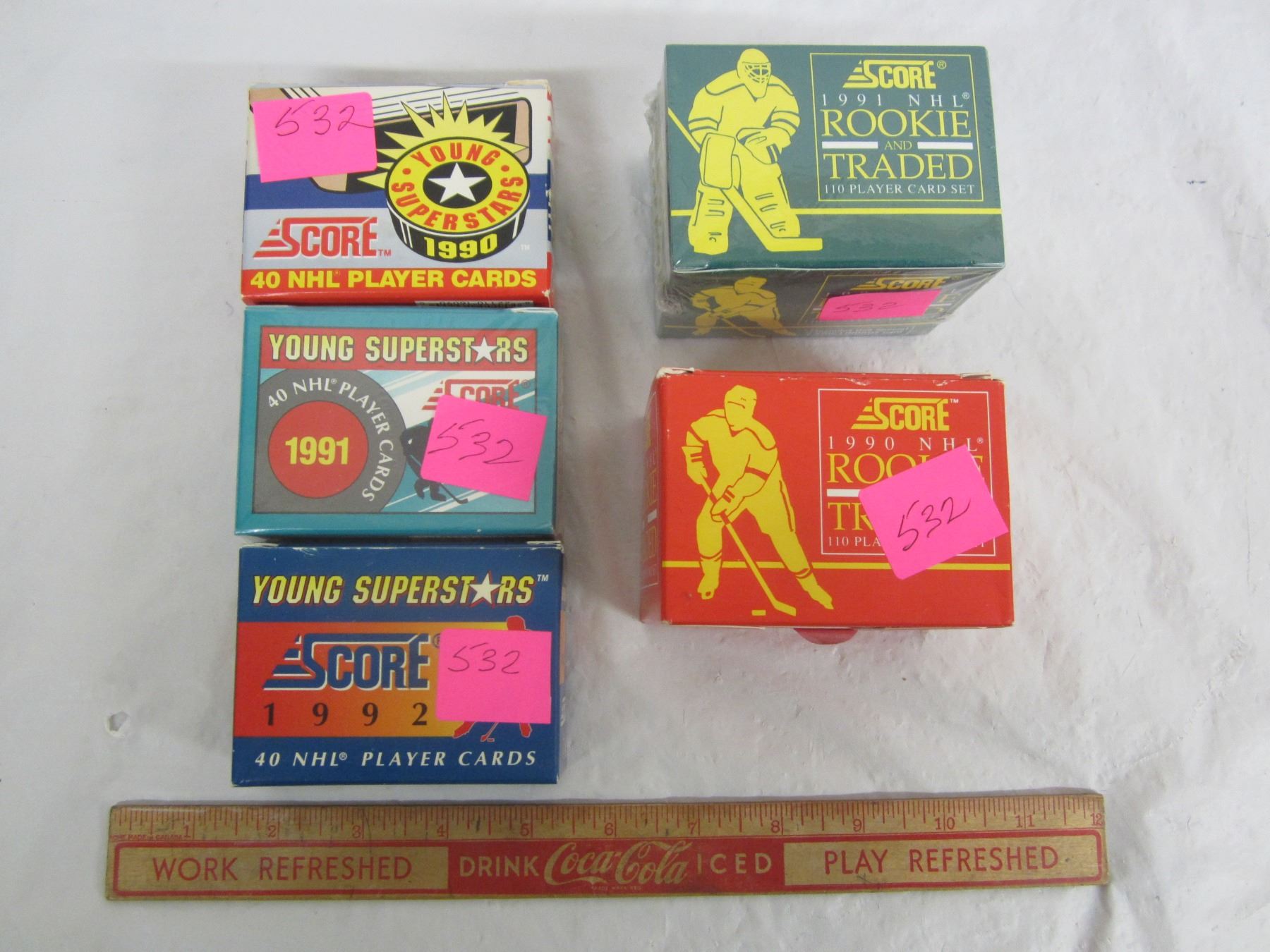 Lot of 5 sets of Score Hockey Young Stars and Traded