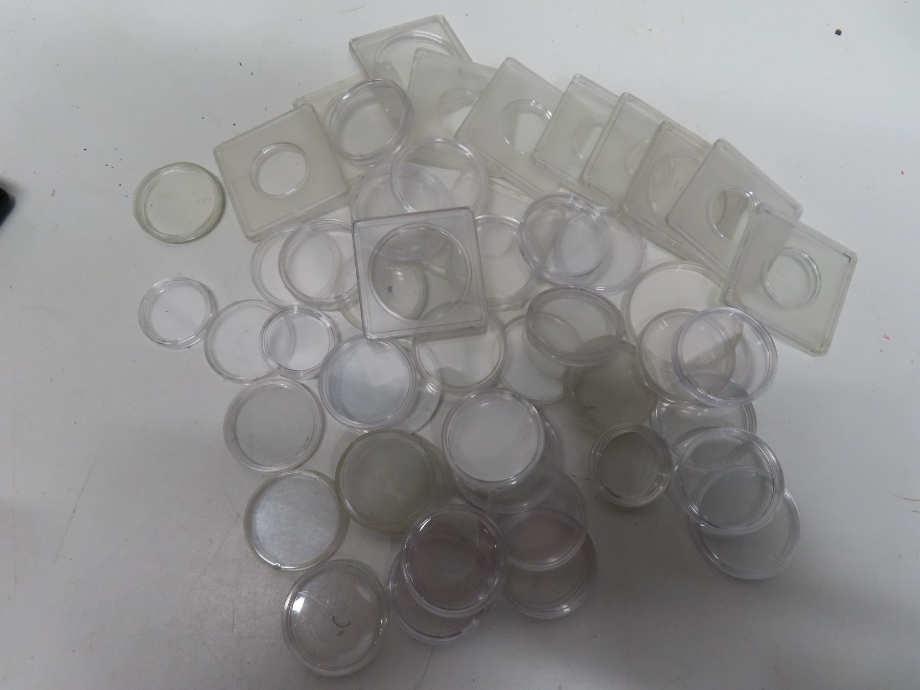 Lot of 50 Hard Plastic Holders for Canadian coins. Most are for Silver Dollars. Used.