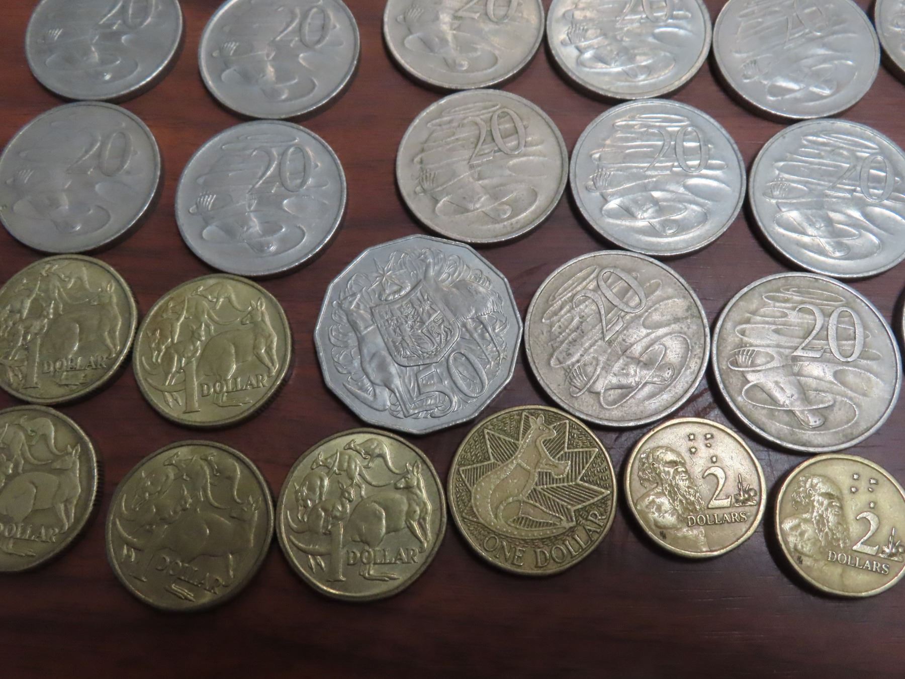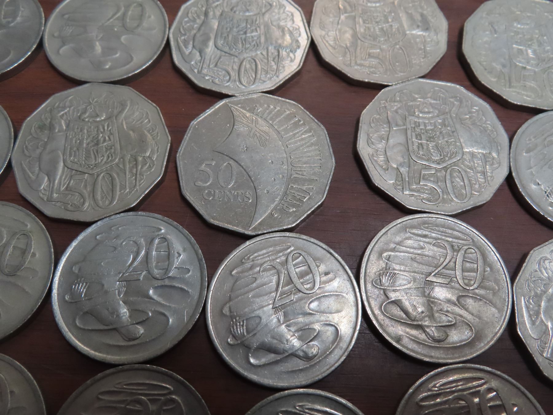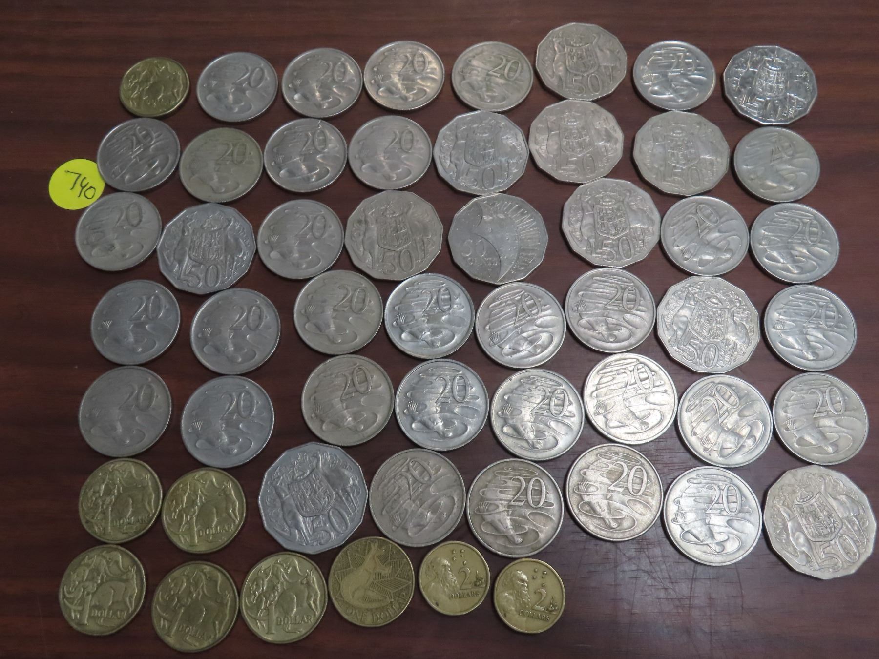 Lot of 54 Australia Coins: 20¢, 50¢, $1 & $2 including years 1966 to 2008