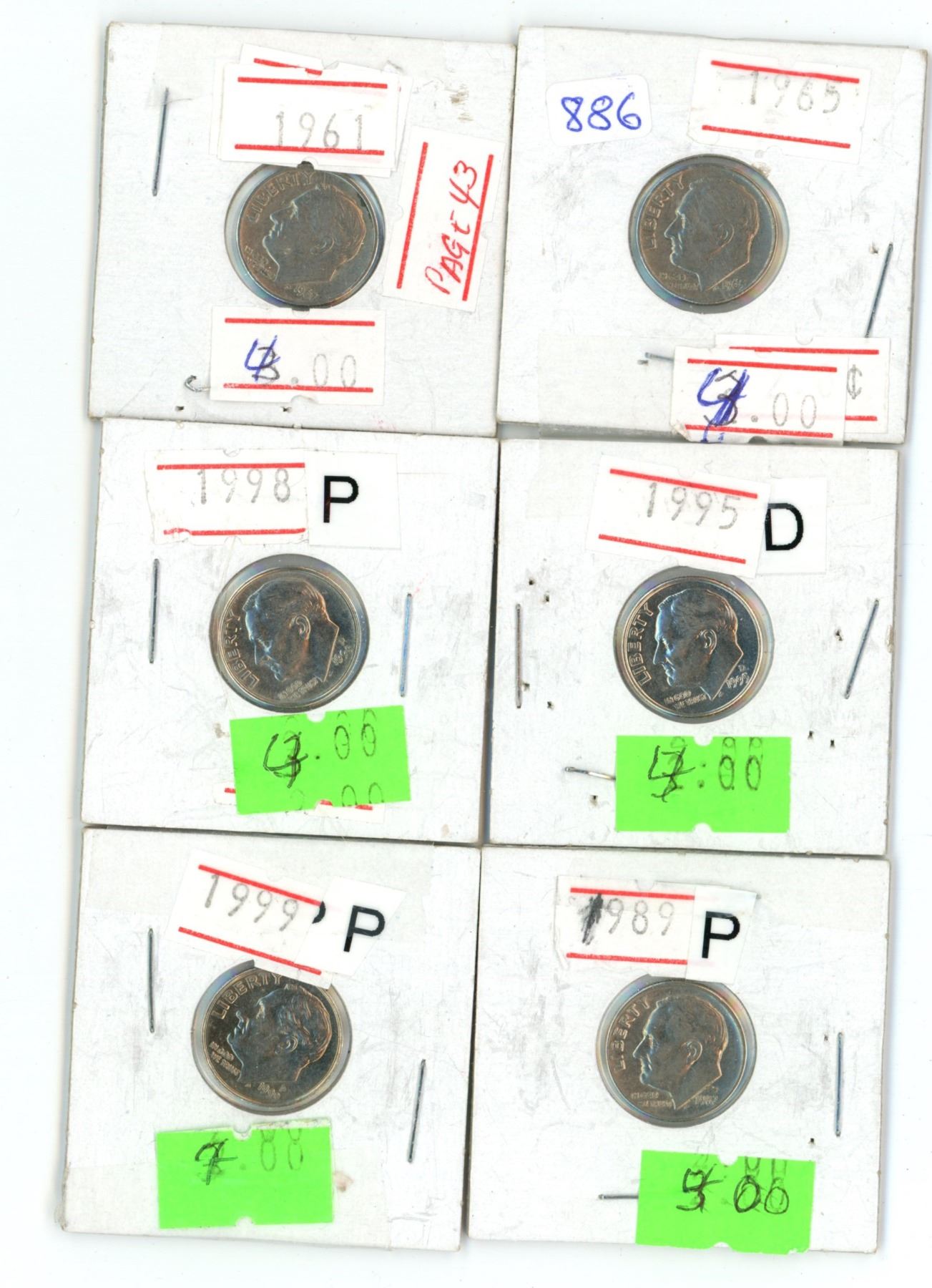 Lot of 6 (1961, 1965, 1989, 1995, 1998-99) USA dimes