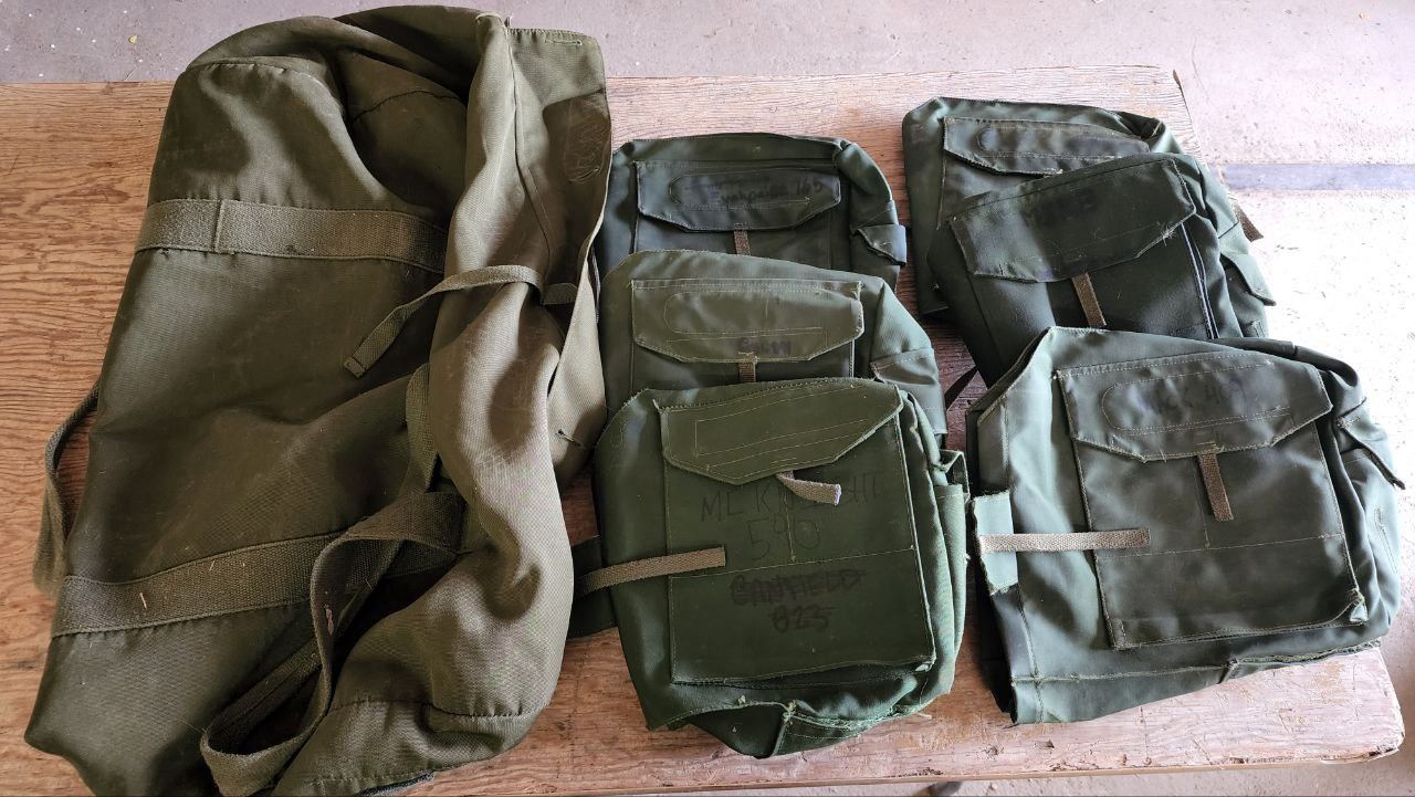Lot of 6 Military Carry Bags, plus a Military Canvas Duffle Bag