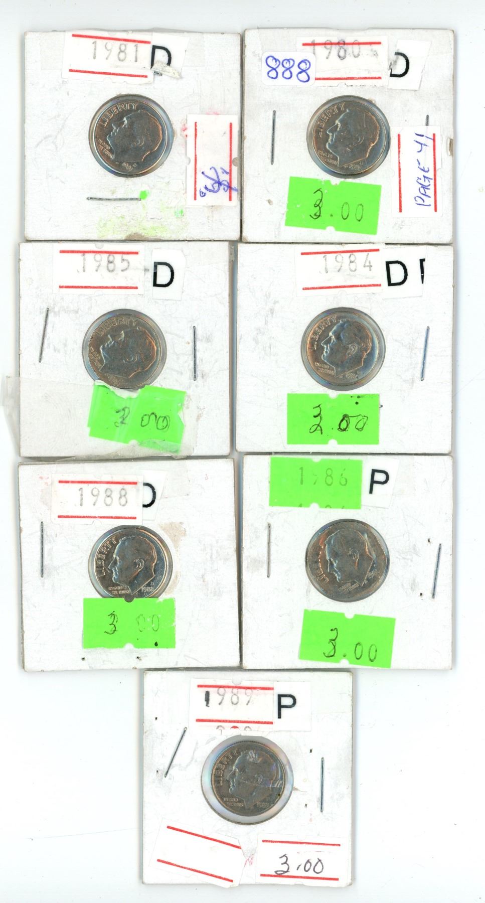 Lot of 7 (1980-81D, 1984-85D, 1986P, 1988D and 1989P) USA dimes