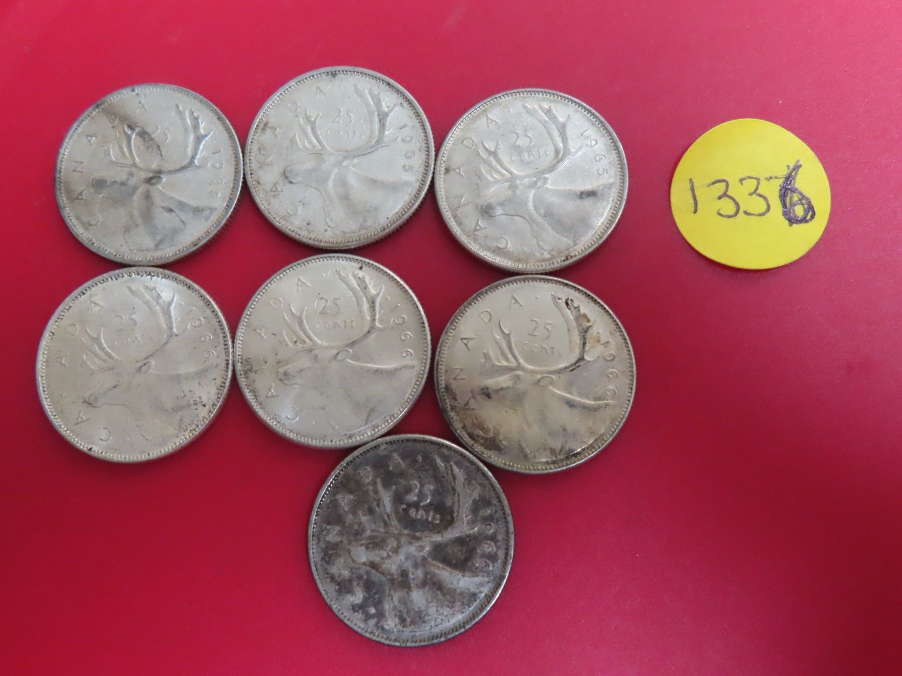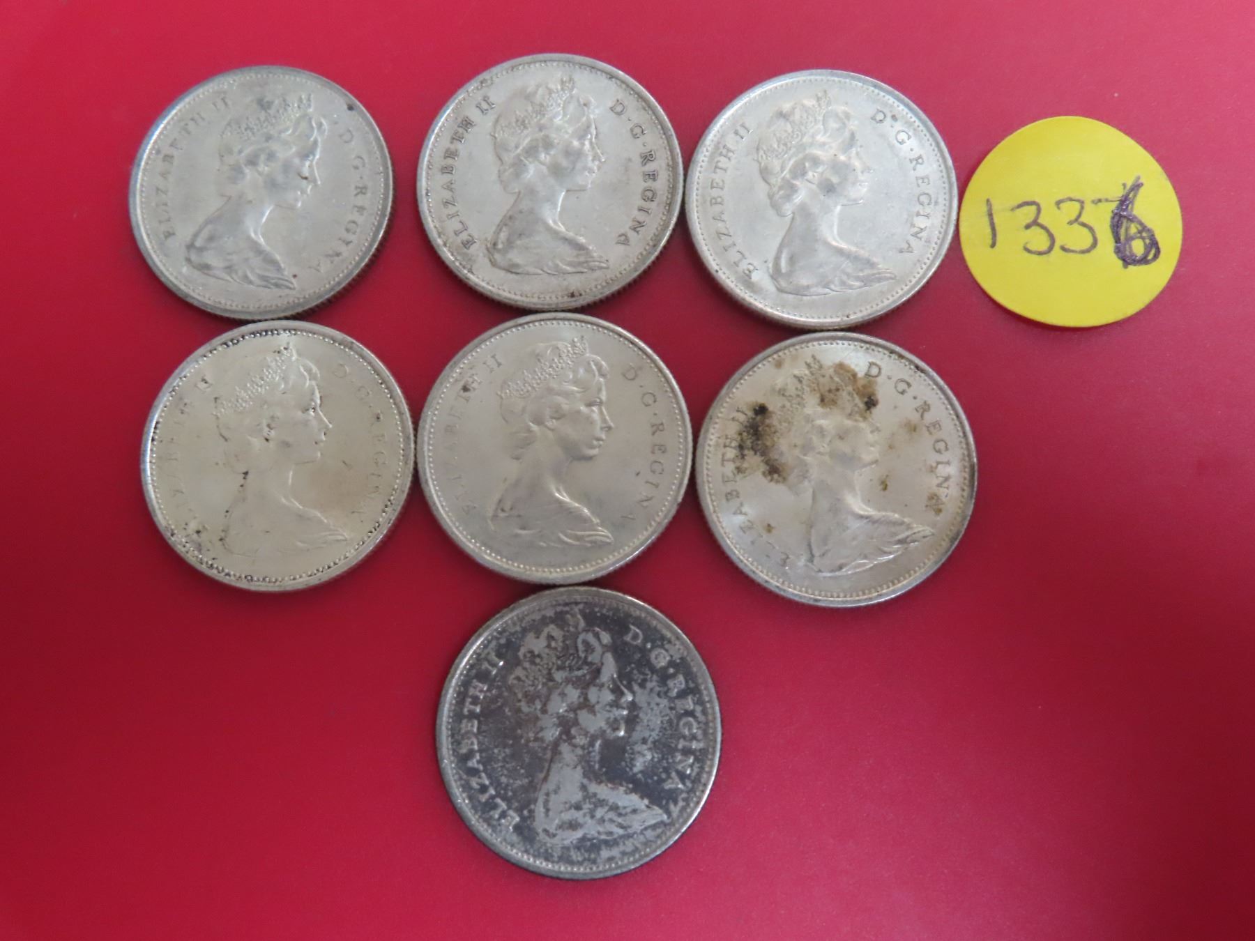 Lot of 7 ( 4-1968 and 3-1965) canada silver 25 cent coin- queen elizabeth