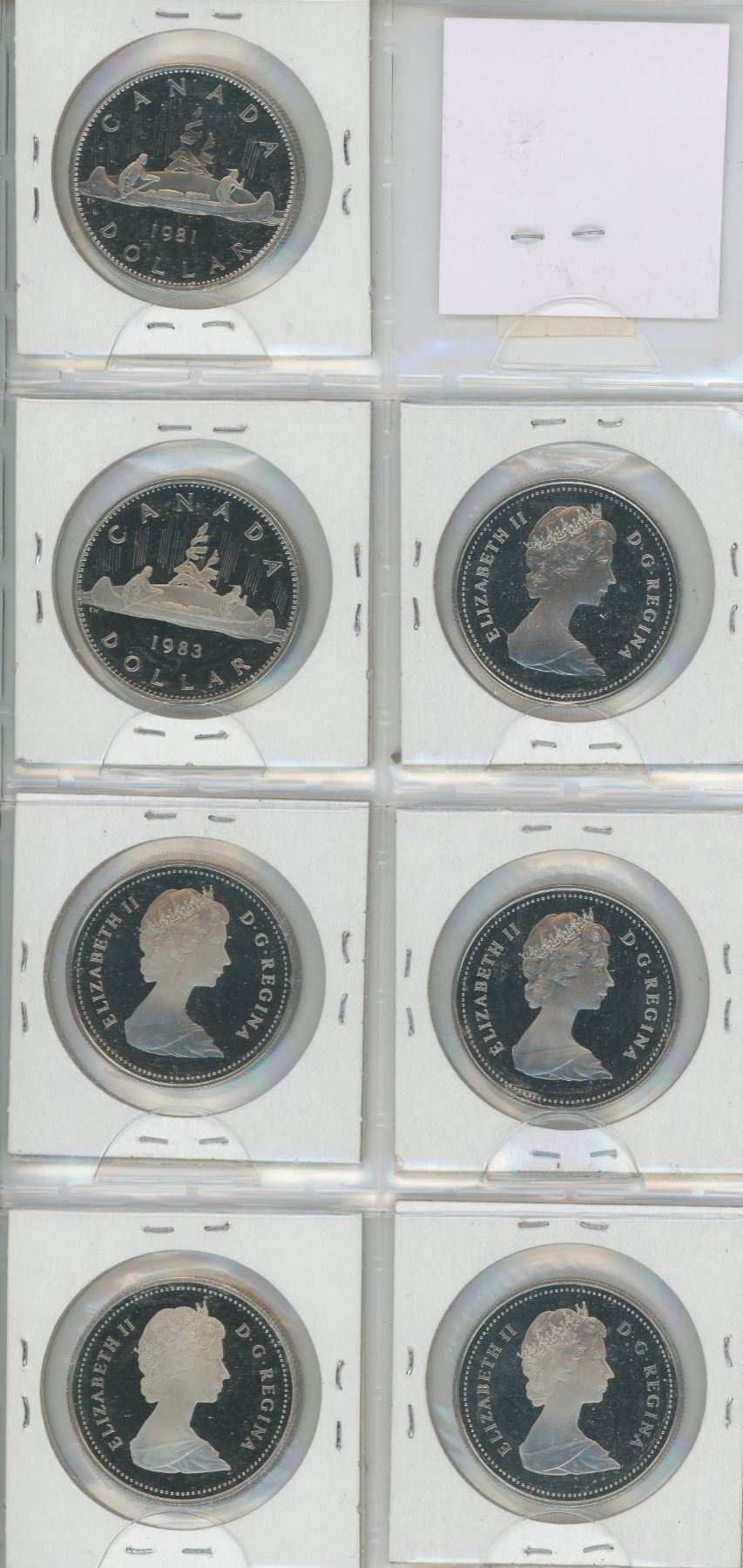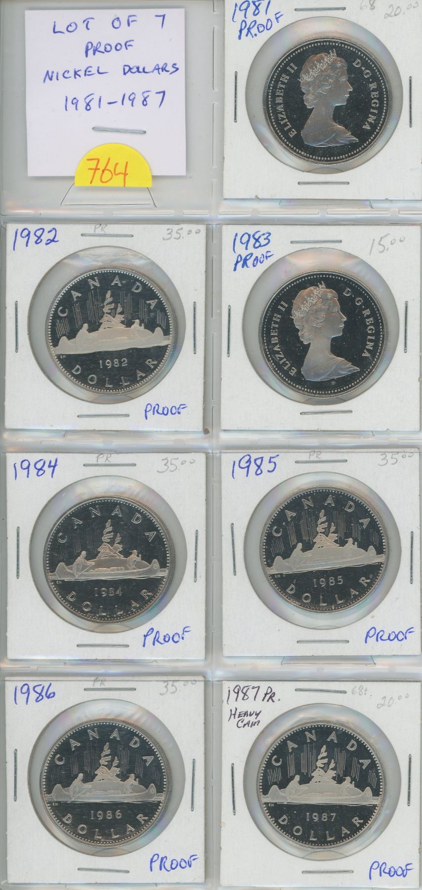 Lot of 7 Proof nickel dollars: 1981, 1982, 1983, 1984, 1985, 1986, 1987. All with Ultra Heavy Cameos.