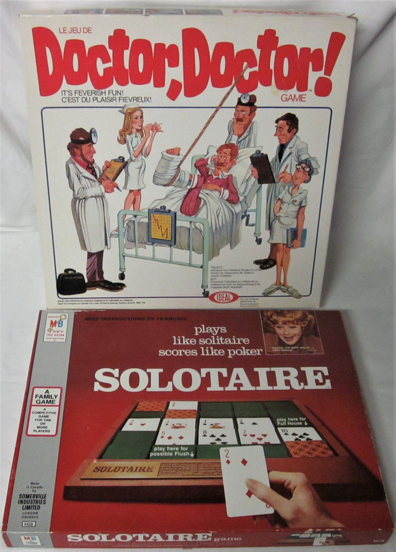 Lot of 7 boardgames (1971 Showdown Poker, 1972 Admirals, 1973 Solitaire, 1978 Doctor-Doctor, 1985 WW
