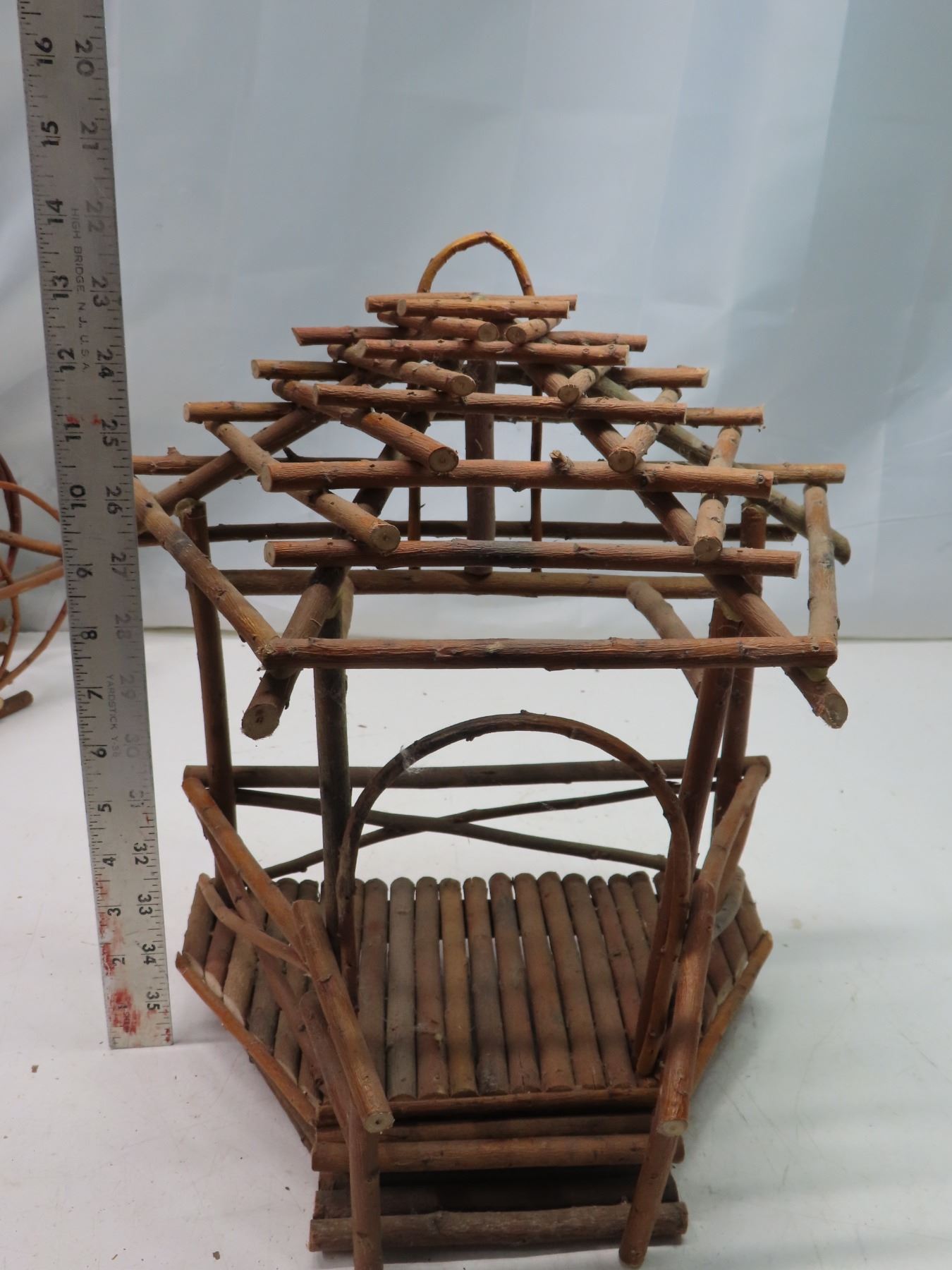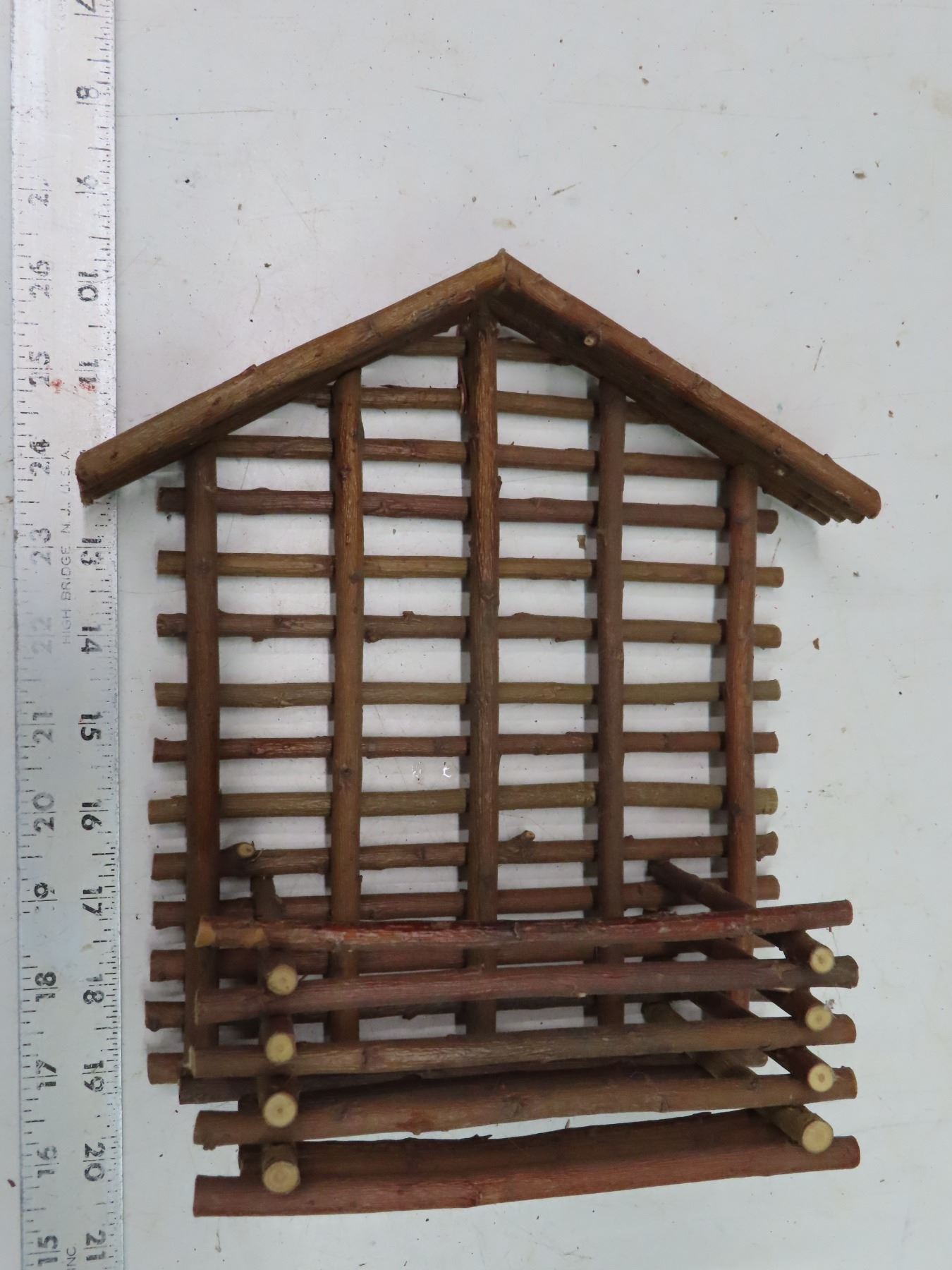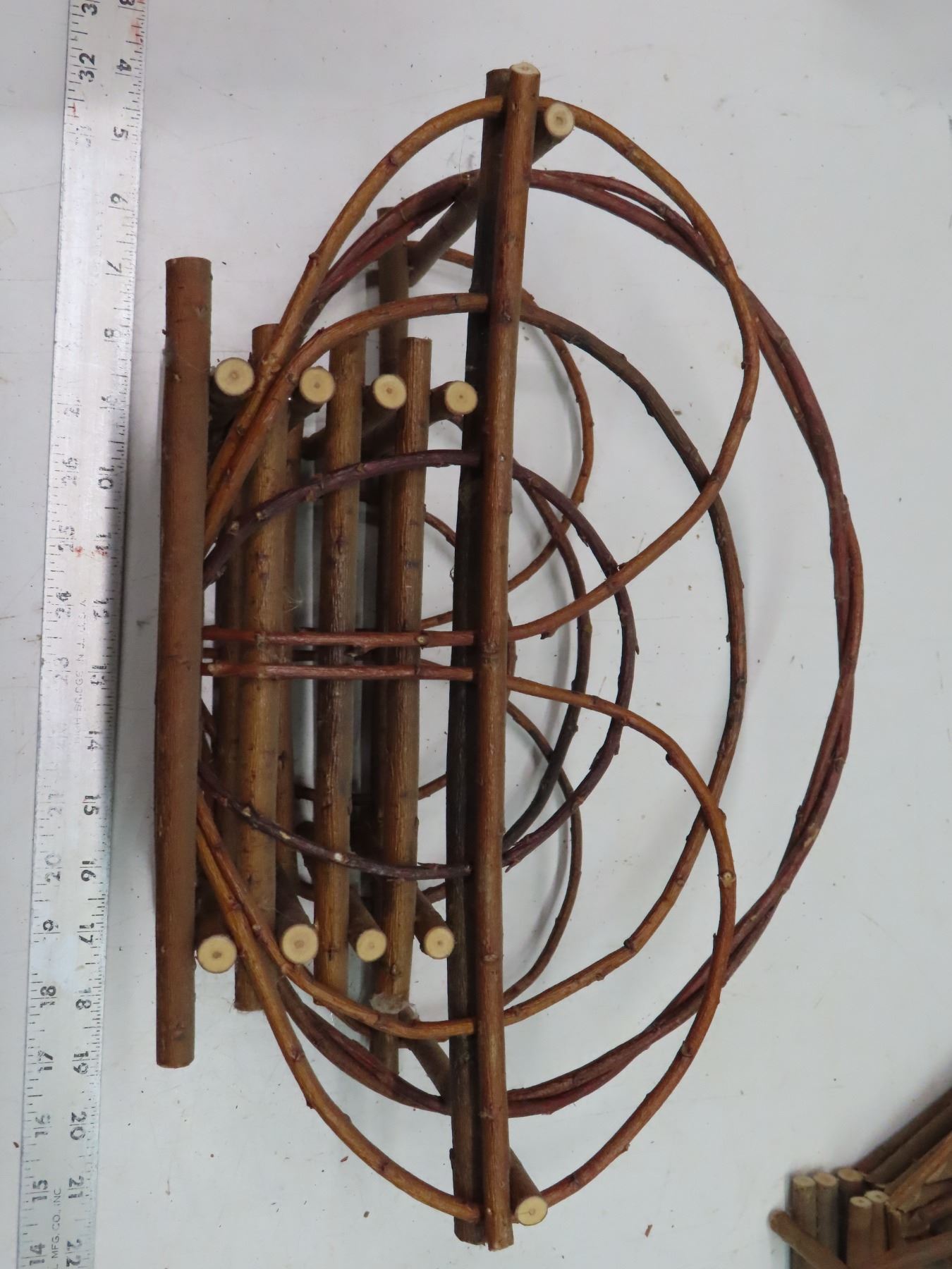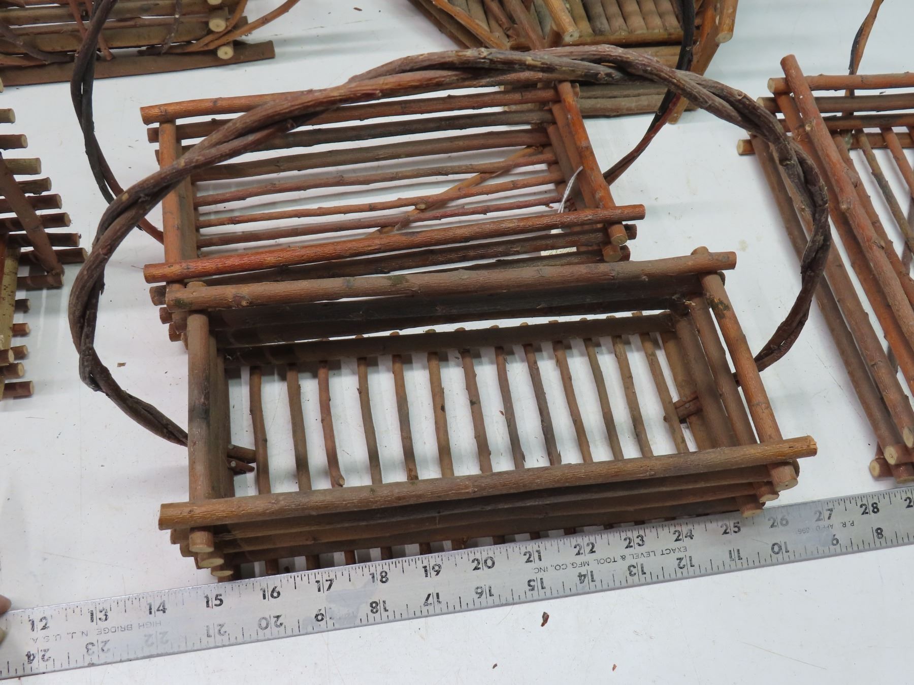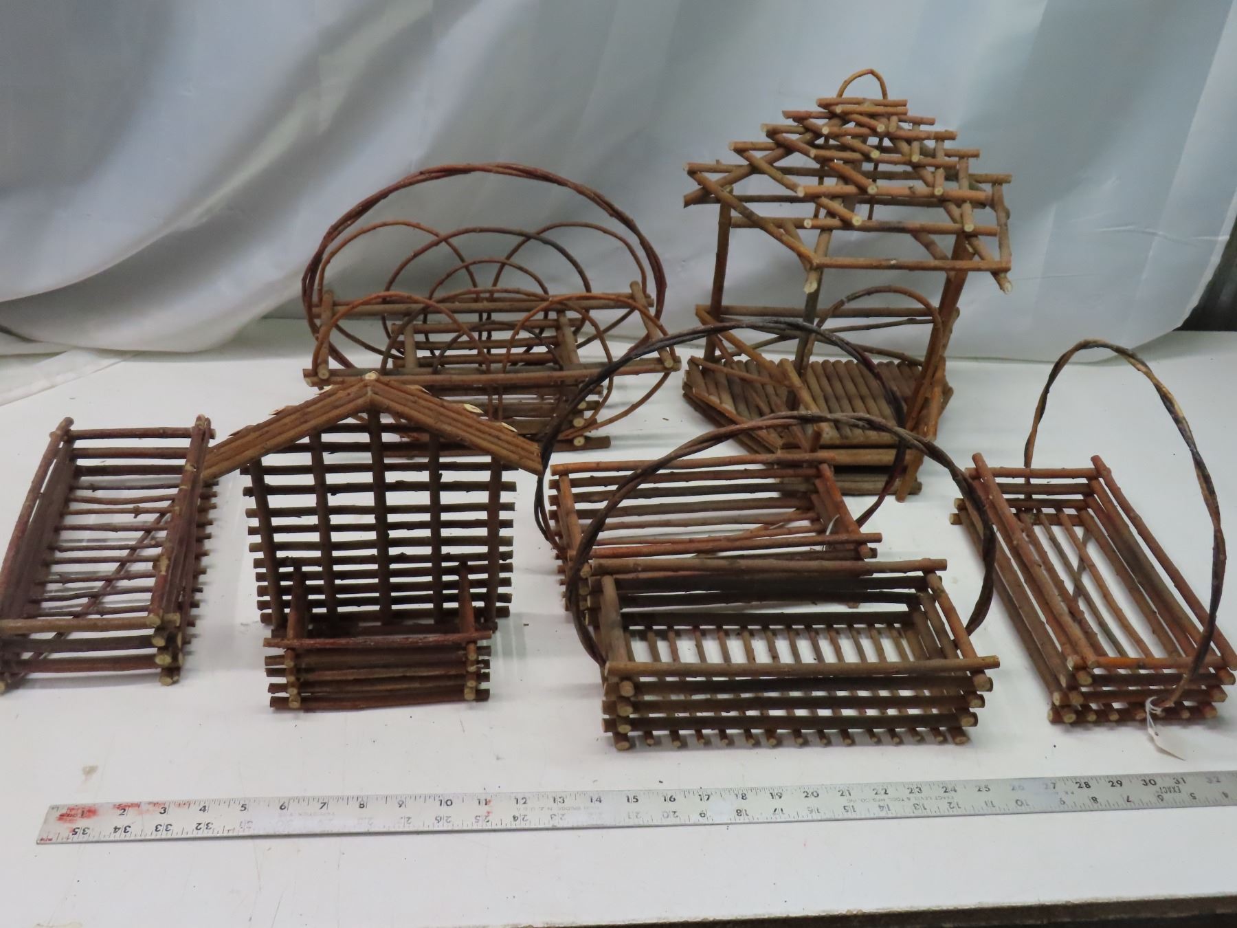 Lot of 7 vintage branch twig baskets, wall mount / house