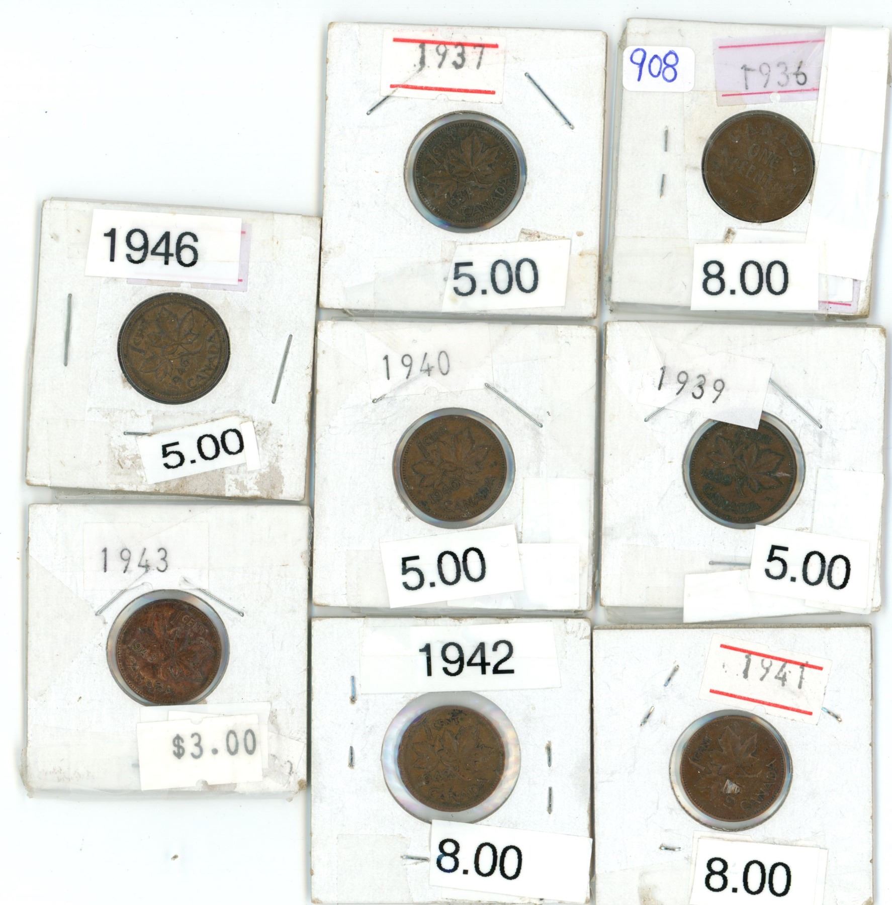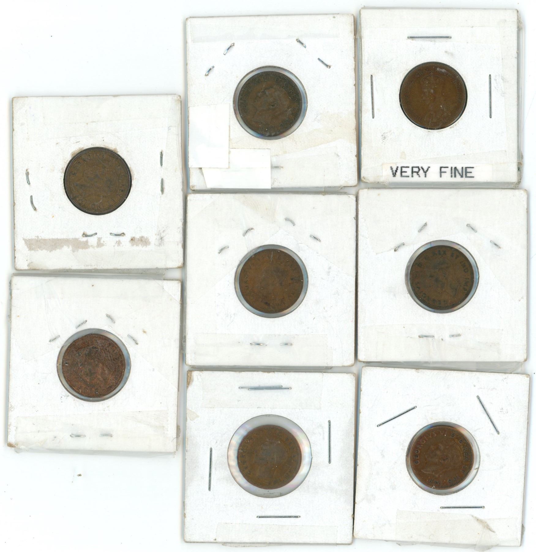 Lot of 8 (1936-37, 1939-43 and 1946) canadian pennies