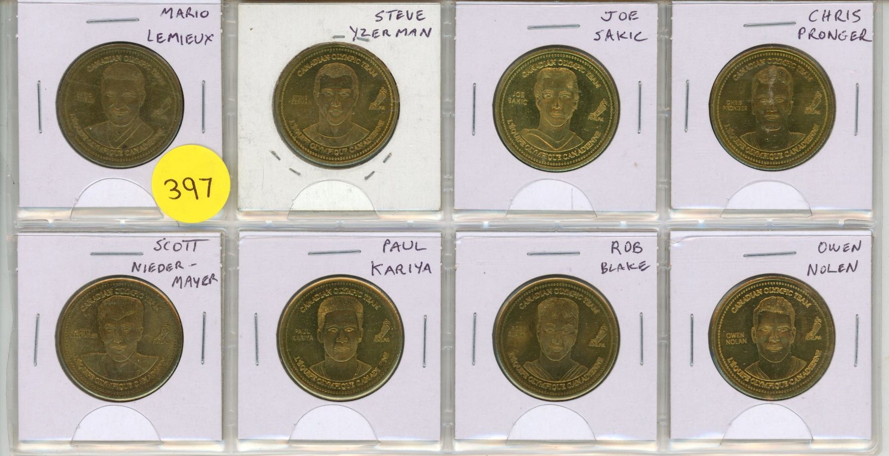 Lot of 8 2002 Coca Cola Canadian Olympic Medals for Hockey: Includes LeMieux and Yzerman.