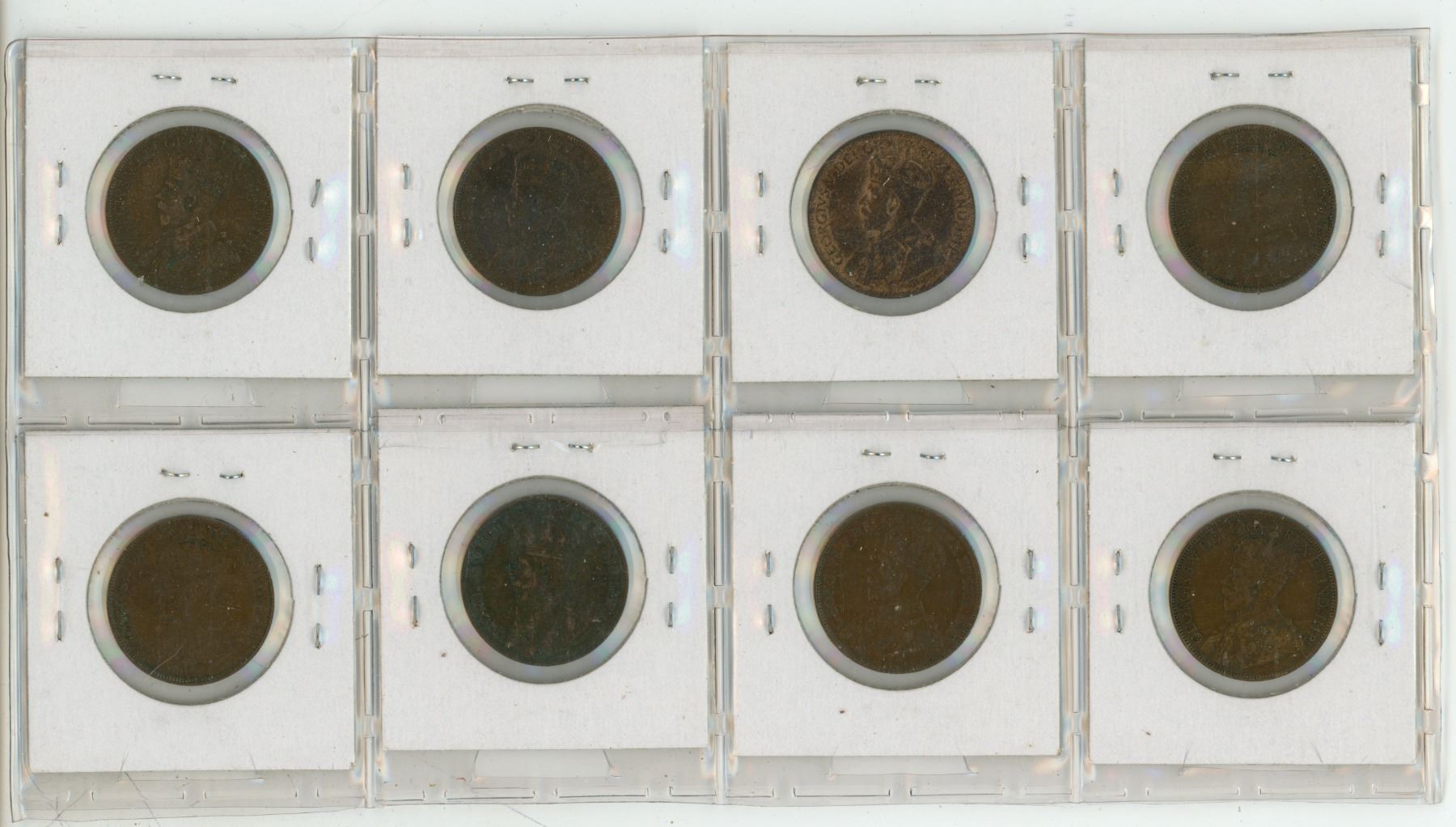 Lot of 8 Canadian George V Large Cents. Includes 1912, 1913, 1915, 1916, 1917, 1918, 1919 & 1920. Co