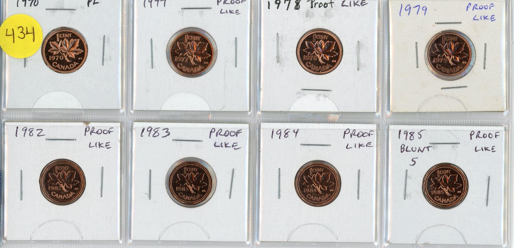 Lot of 8 Canadian Proof Like Small Cents. Includes 1970, 1977, 1978, 1979, 1982, 1983, 1984 & 1985 B