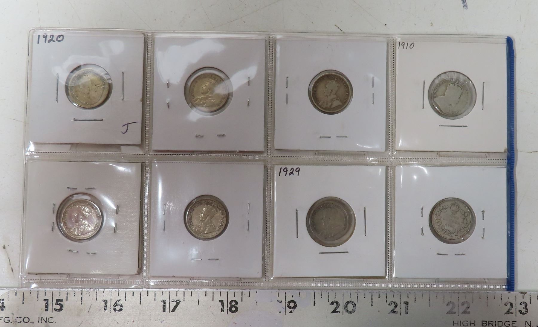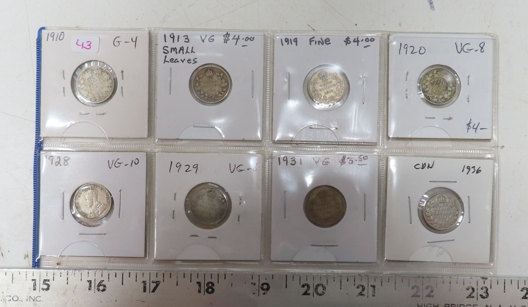 Lot of 8 Canadian Silver 10 Cents. Includes 1910, 1913 Small Leaves, 1919, 1920, 1928, 1929, 1931 &