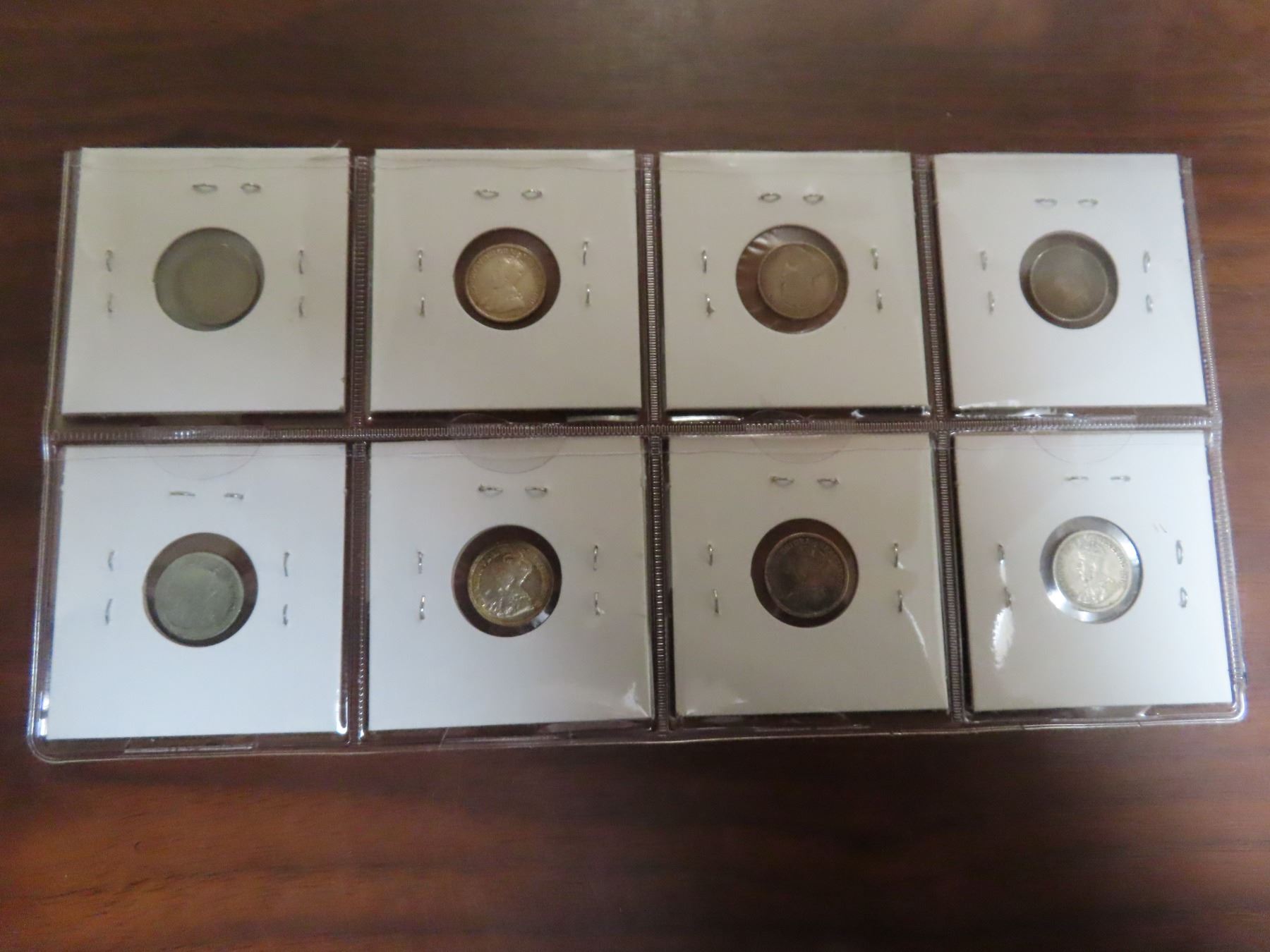 Lot of 8 Canadian Silver 5 Cents. Includes 1902H Large H, 1907 Narrow Date, 1913, 1914, 1917, 1918,