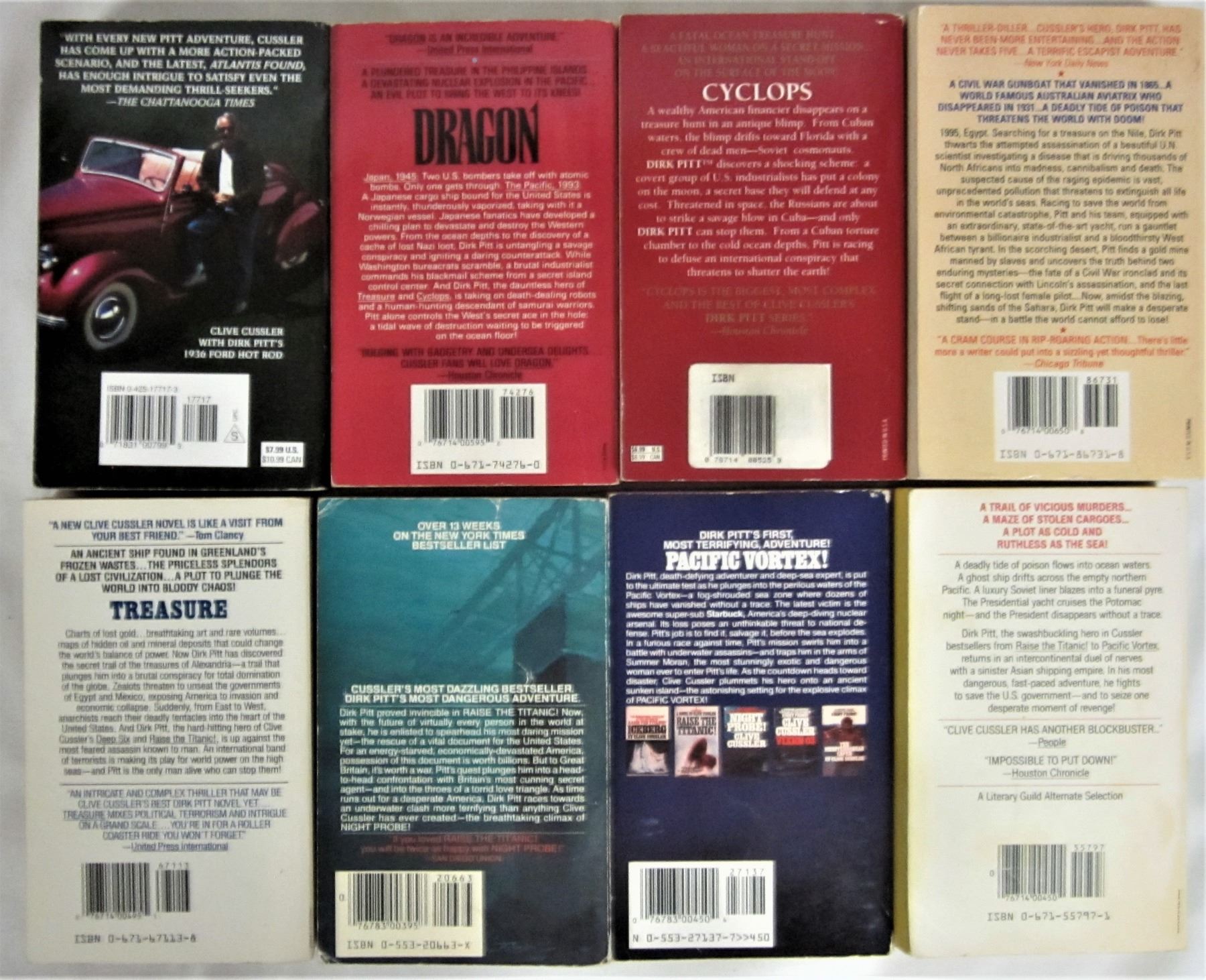 Lot of 8 Soft cover Clive Cussler Adverture pocket books