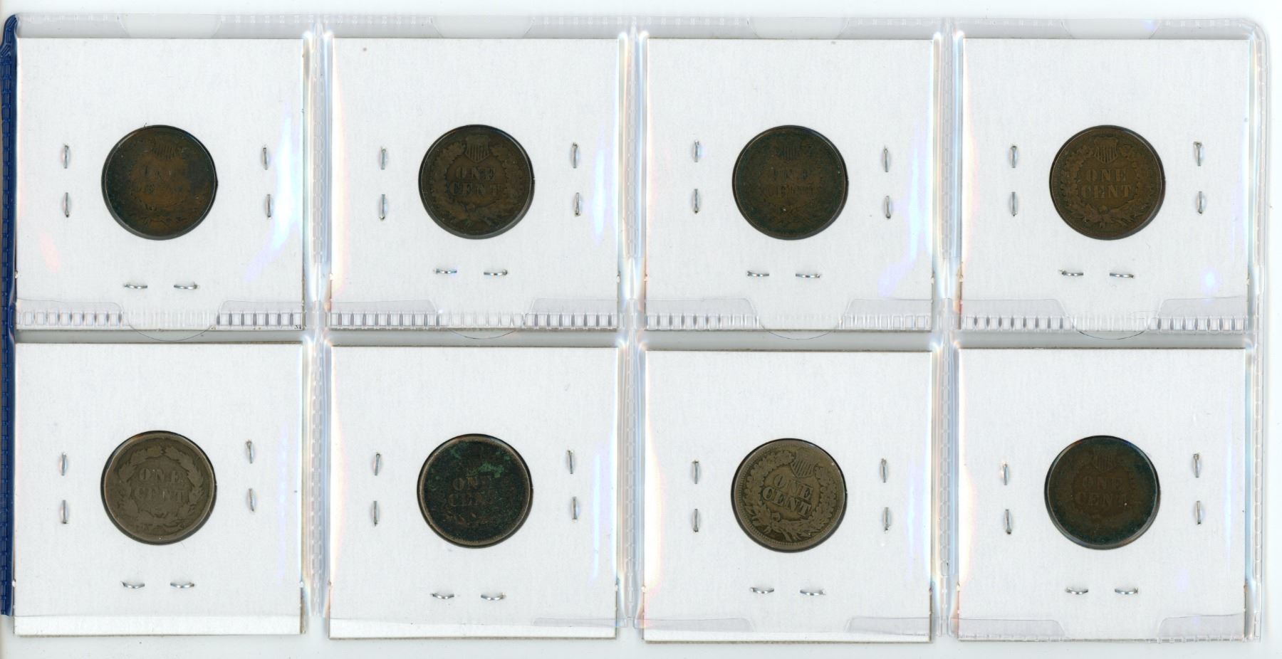 Lot of 8 U.S. Indian Head Cents including 3 Key Dates: 1859, 1860 & 1863, plus 1882, 1891, 1900, 190