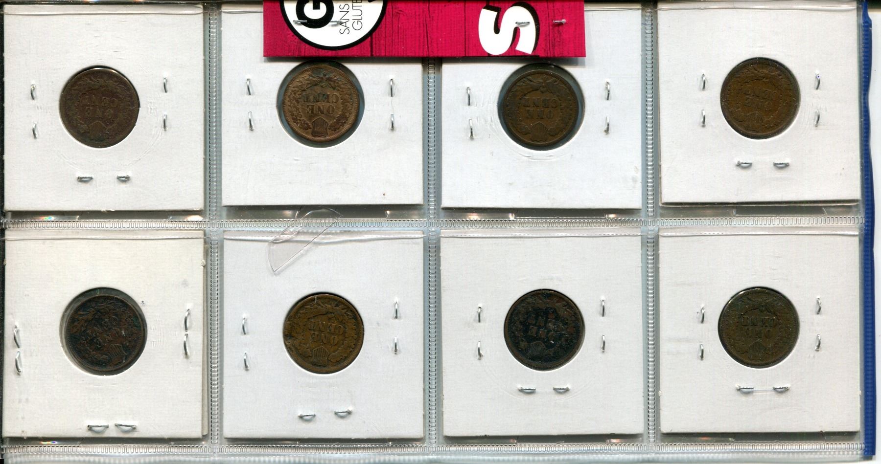 Lot of 8 U.S. Indian Head Small Cents 1896 – 1908. Includes 1896, 1898, 1899, 1902, 1903, 1906, 1907