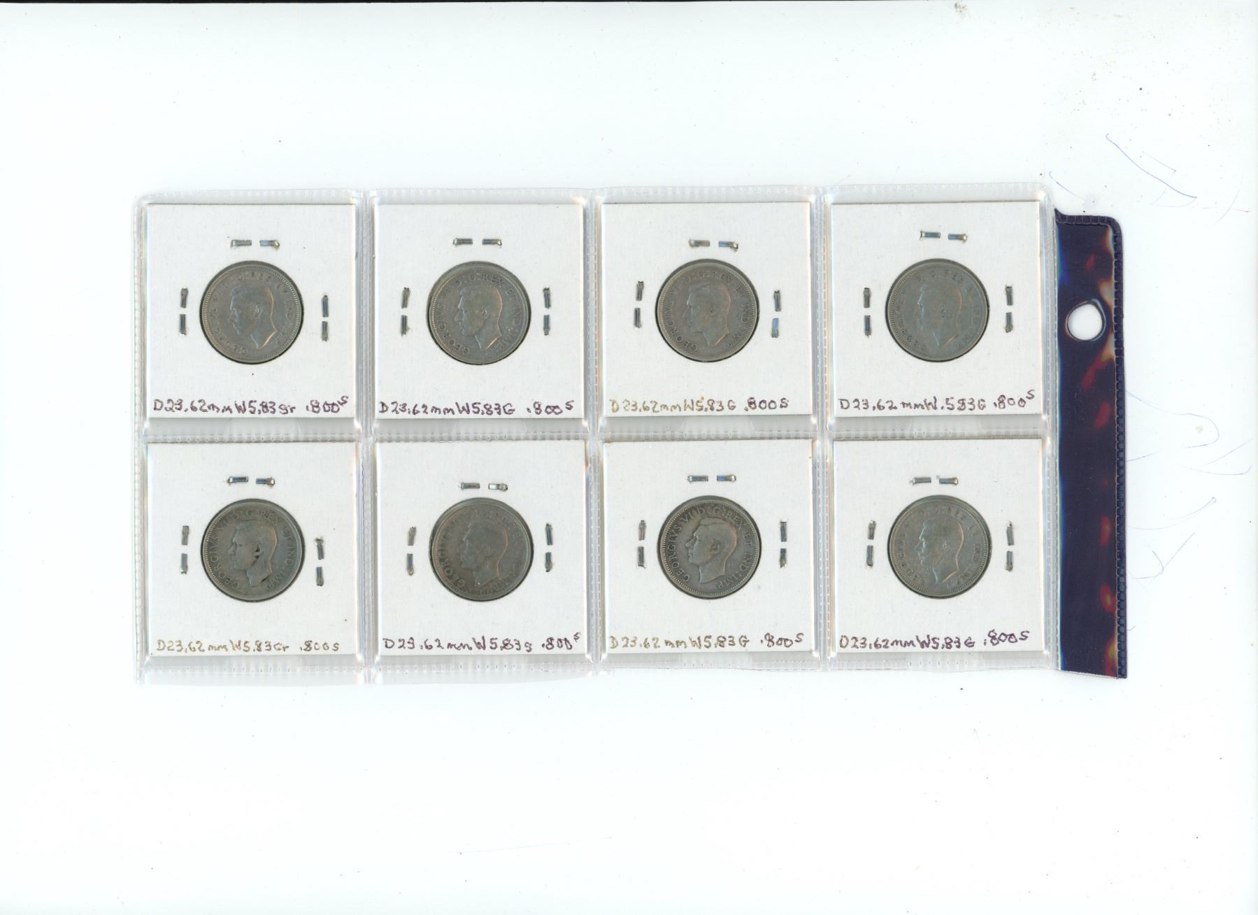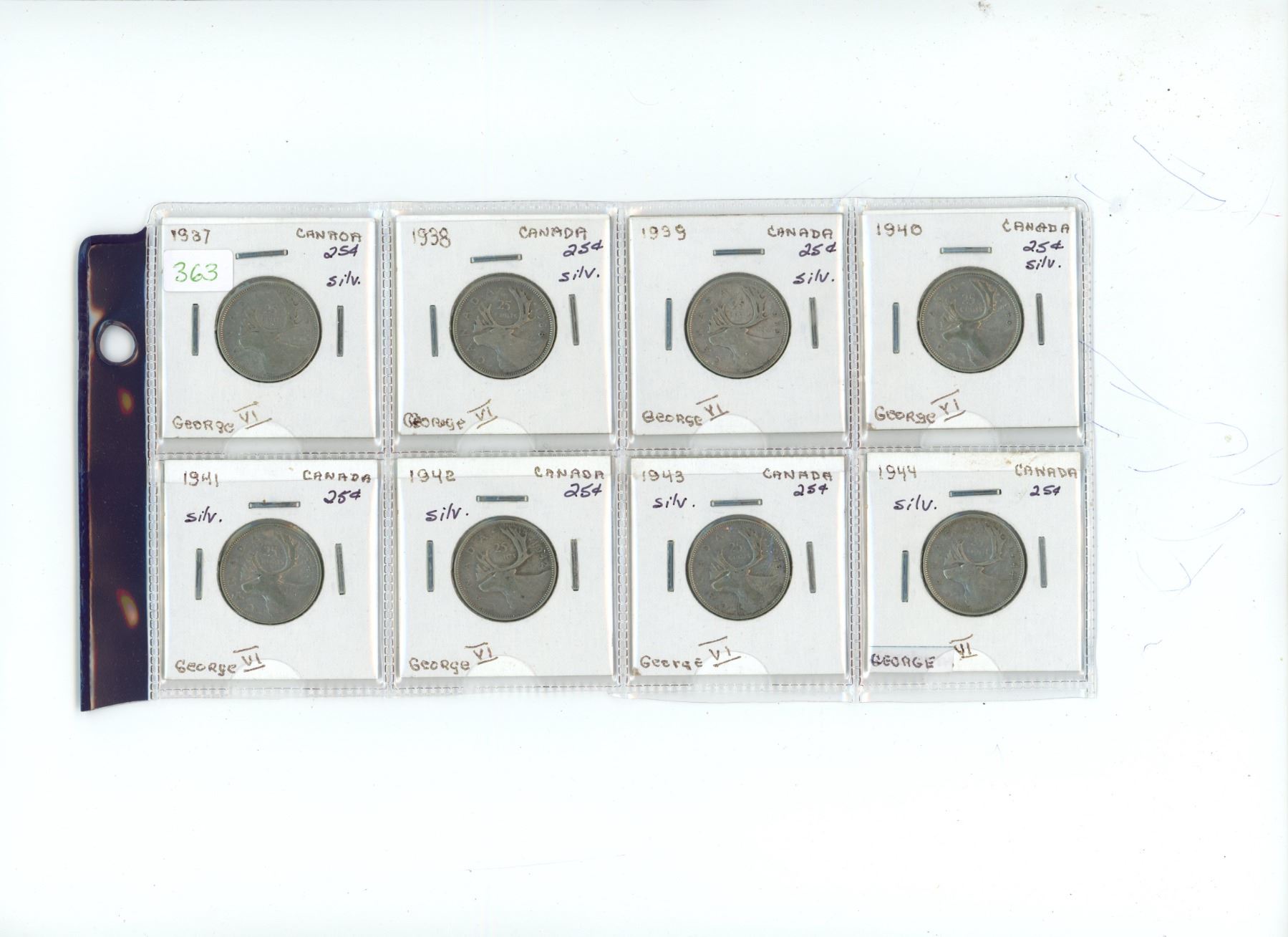 Lot of 8 canada silver 25 cent, 1937-1944