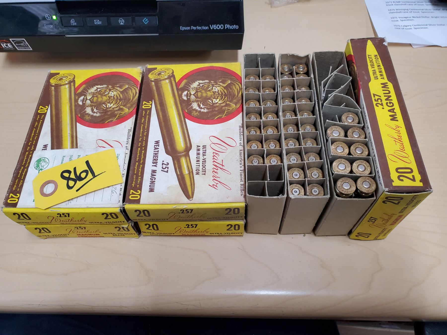 Lot of 9 live Weatherby .257 magnum ammunition & 114 brass (40 bright) (cannot ship, PAL required)