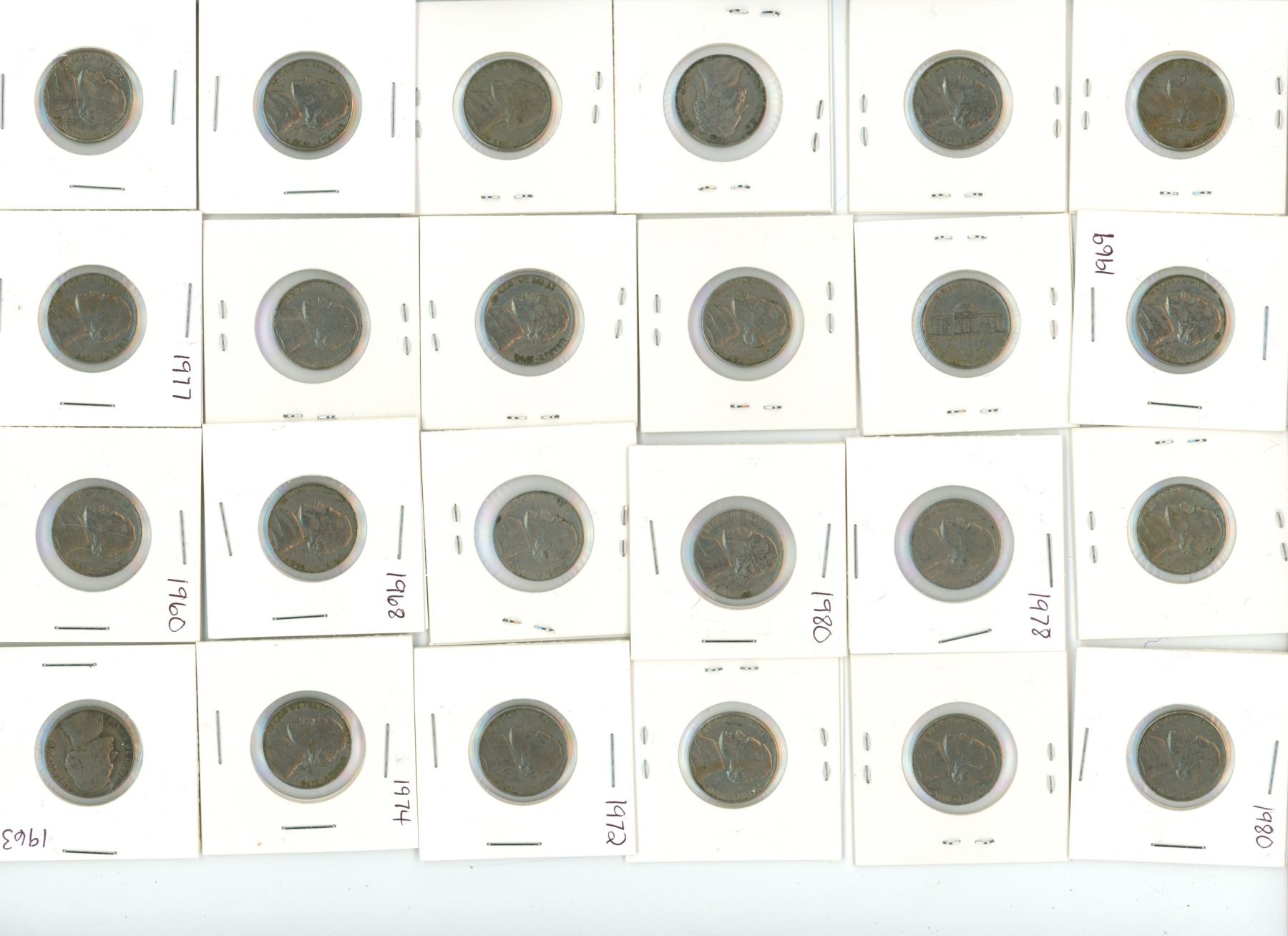 Lot of American five Cent Coins from 20th Century