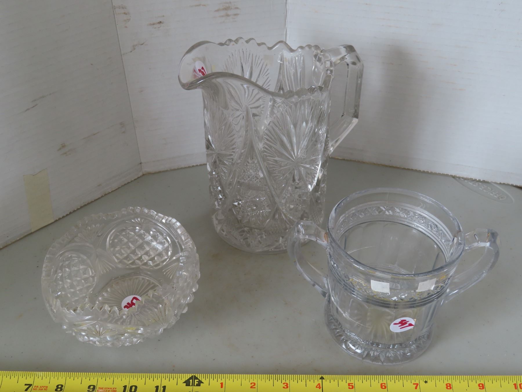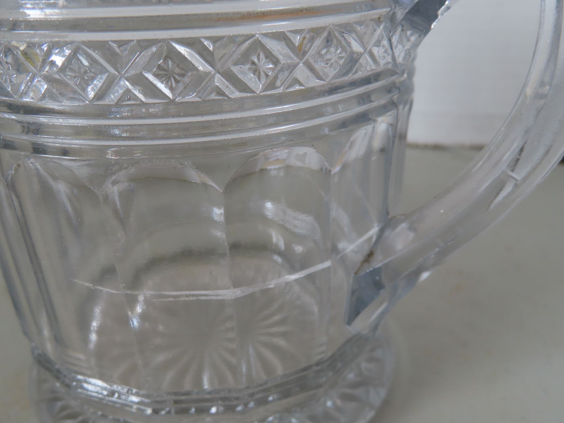 Lot of Antiques= 1 crystal jug, 2 pressed glass bowls
