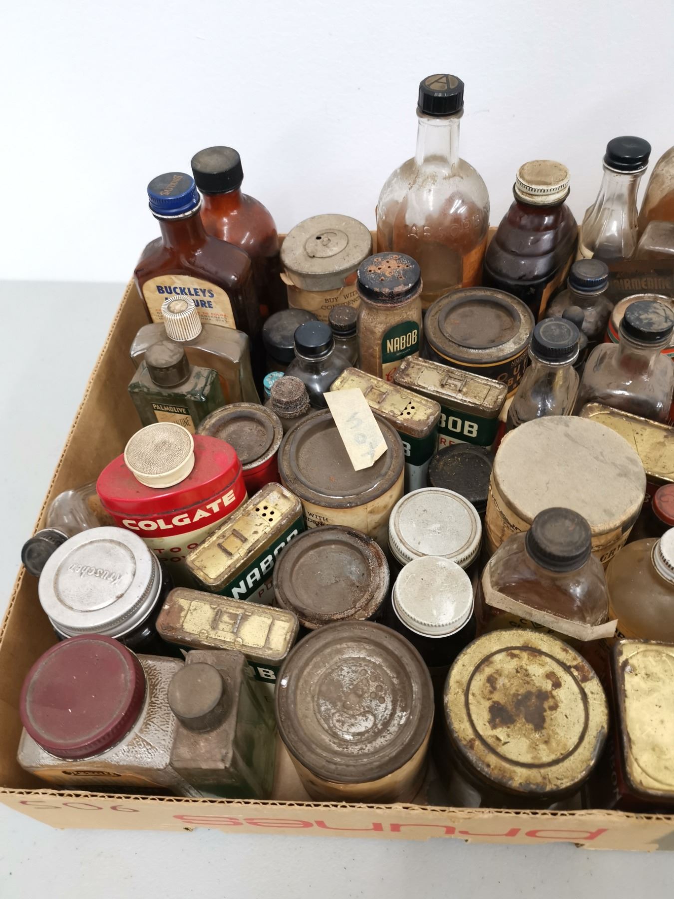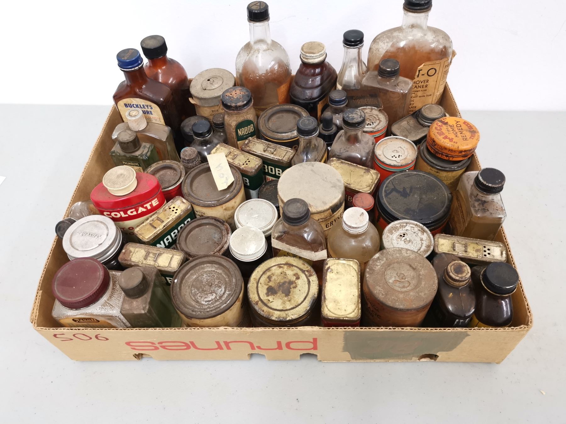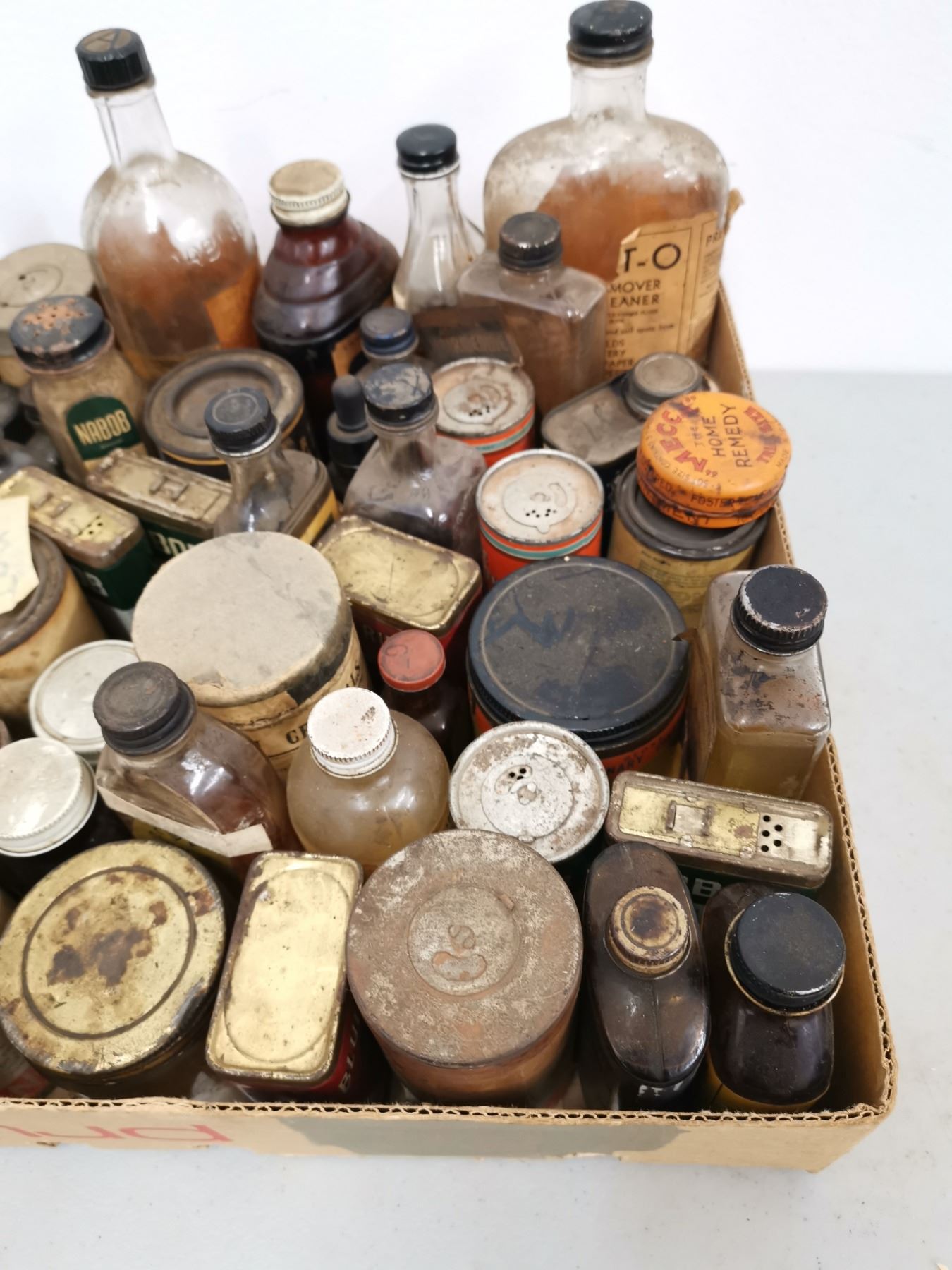 Lot of Assorted Antique/vintage bottles & tins (spices & cleaning supplies)