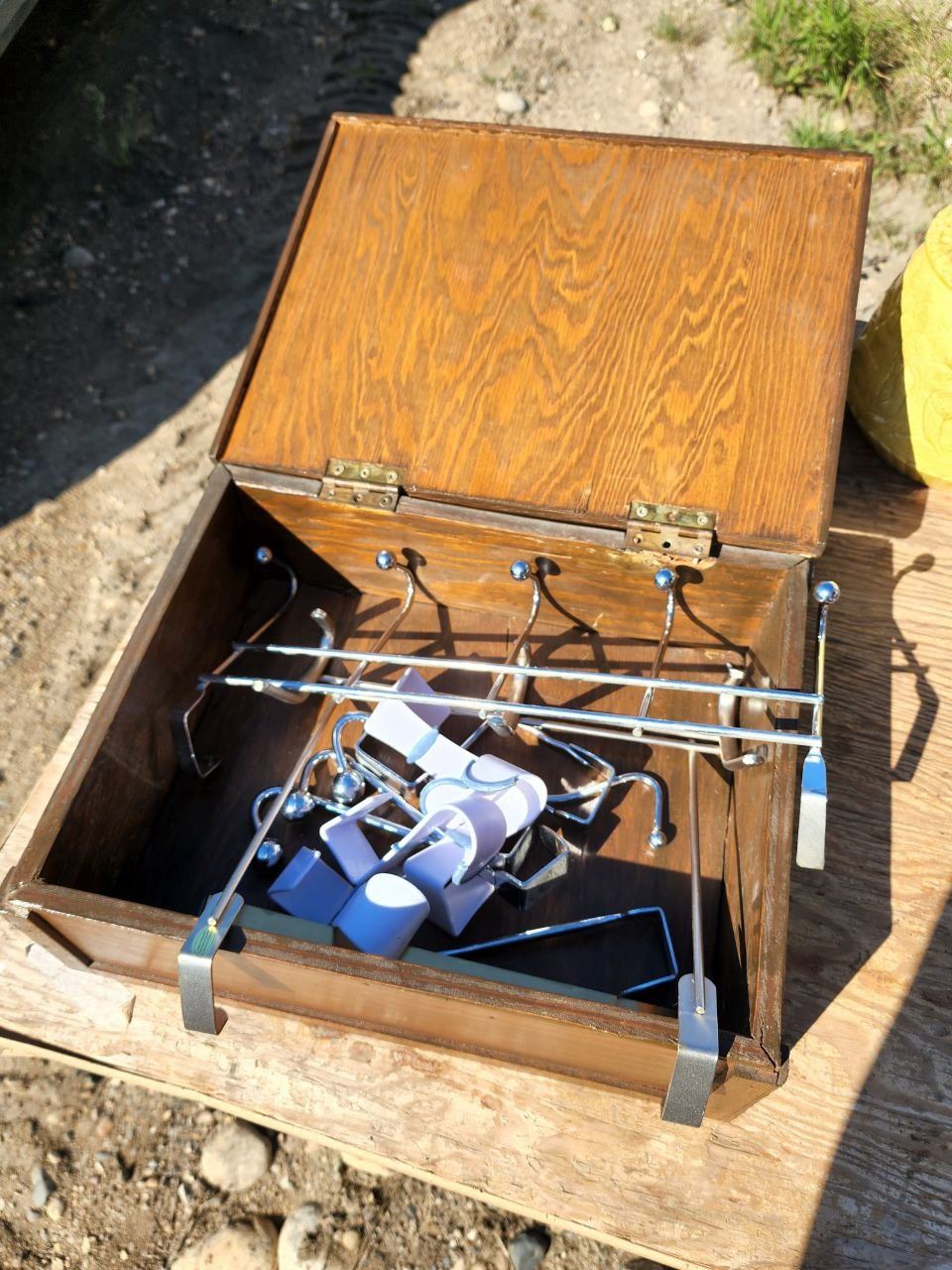Lot of Assorted Hanging Clothes Hookers in Wooden Box