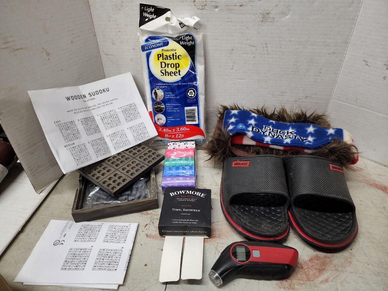 Lot of Assorted Household items, Mens FlipFlops sz 10