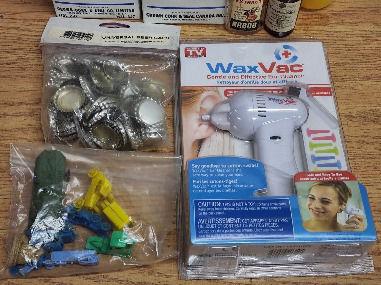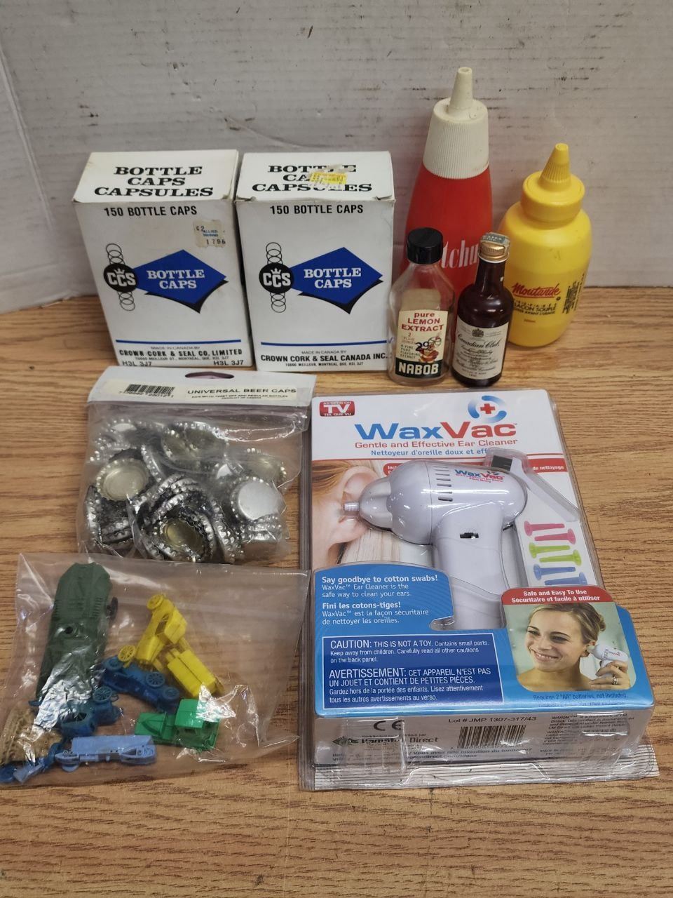 Lot of Assorted Items, New Bottle Caps, Bottles and Wax Vac (For Ears)