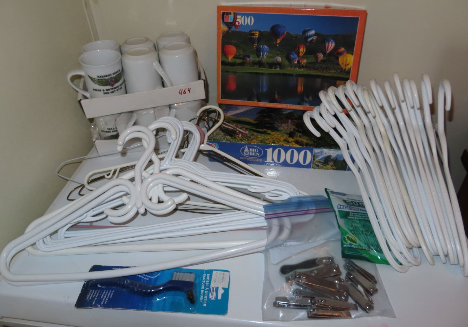 Lot of Assorted household items (Includes 12 mugs + 2 Puzzles + Hangers + Bathroom accessories/toiletry accessories