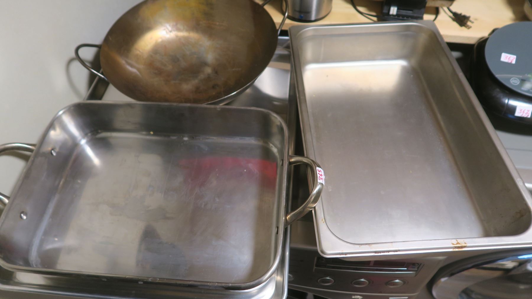 Lot of Baking and serving pans/tray + stir fry pot (Tray=17.5"x25.5", pan=11"x19", Pan=10"x15")