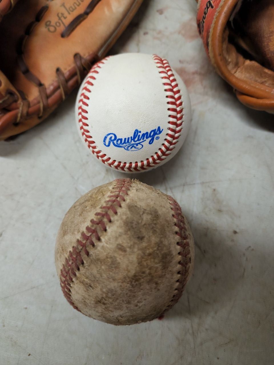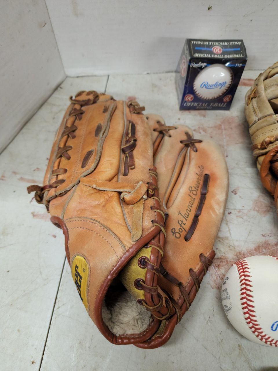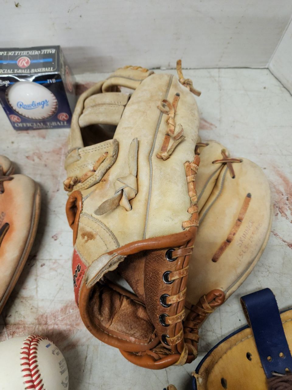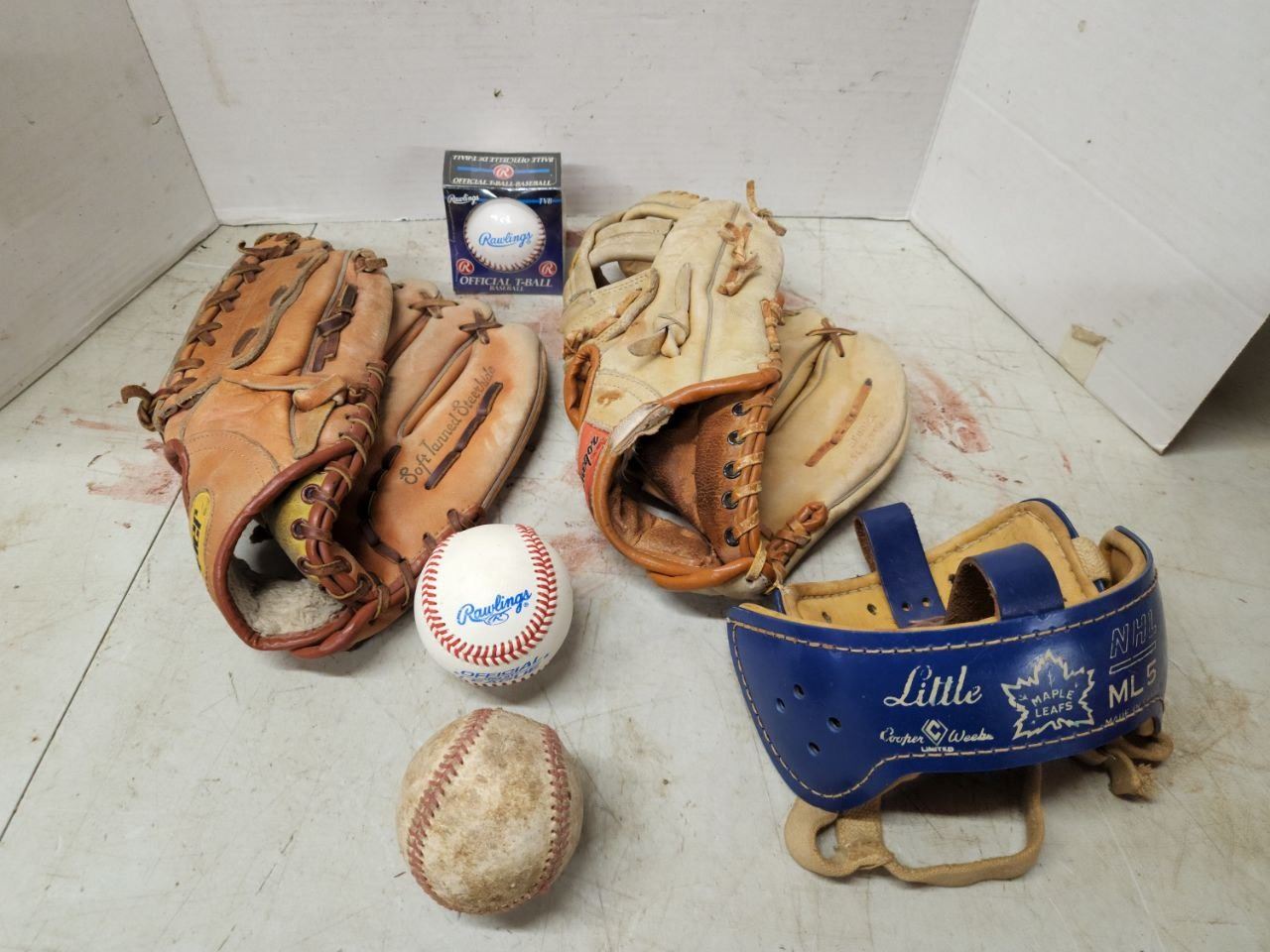 Lot of Baseball Gloves, Baseballs and Helmet