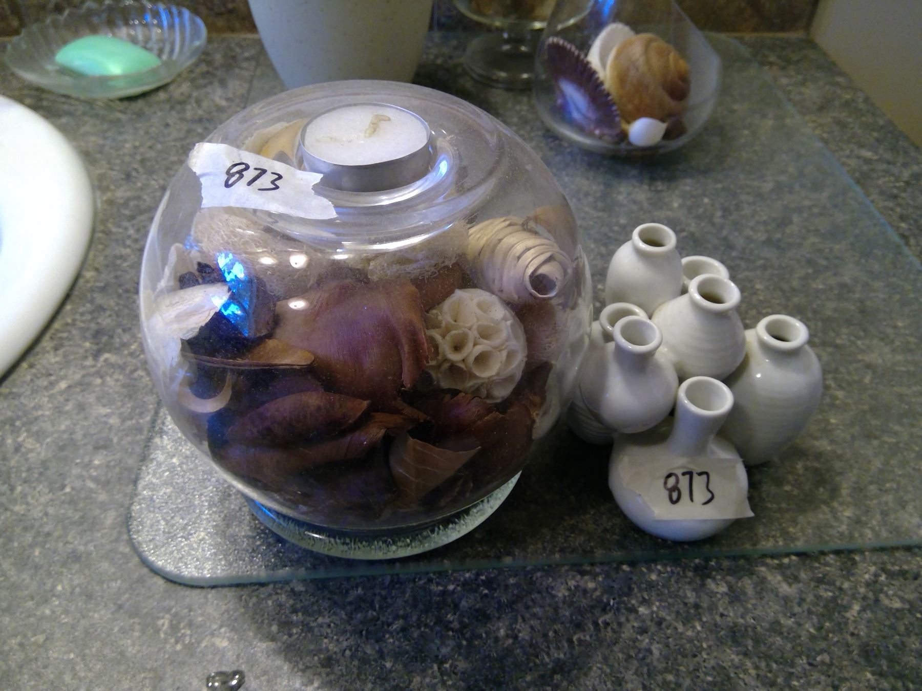 Lot of Bathroom Décor - Coral Mini Vases and Candle Holder