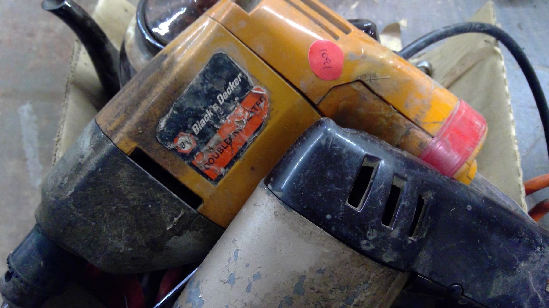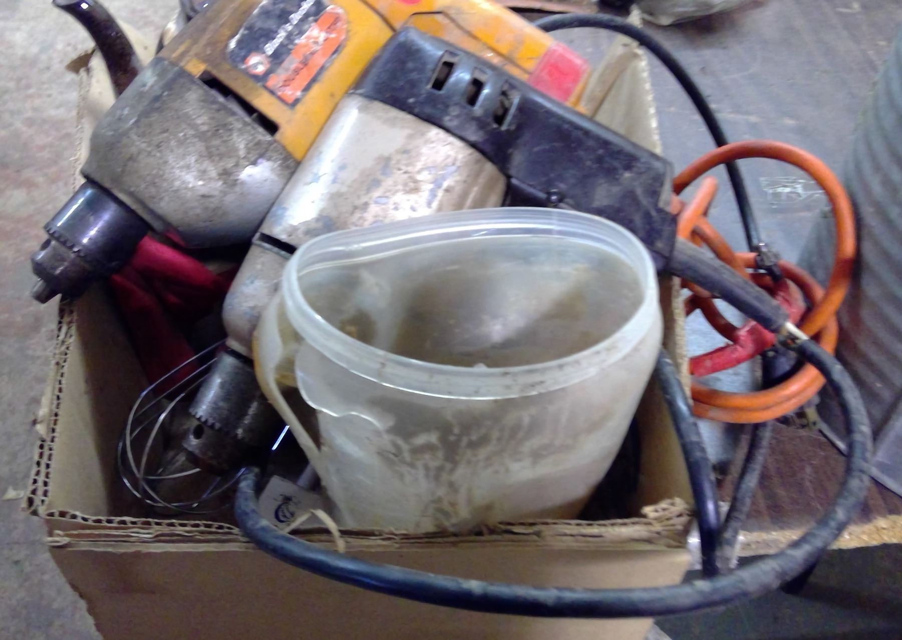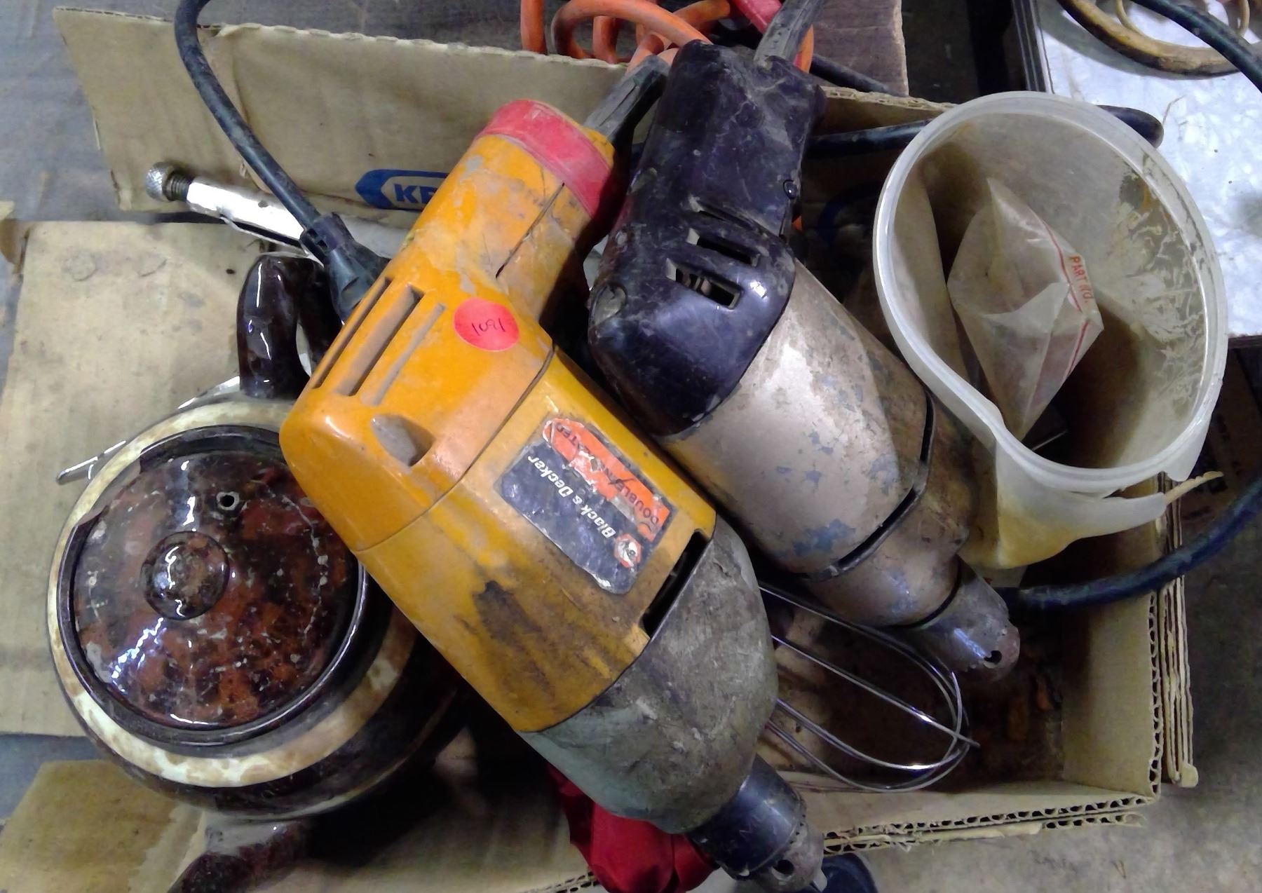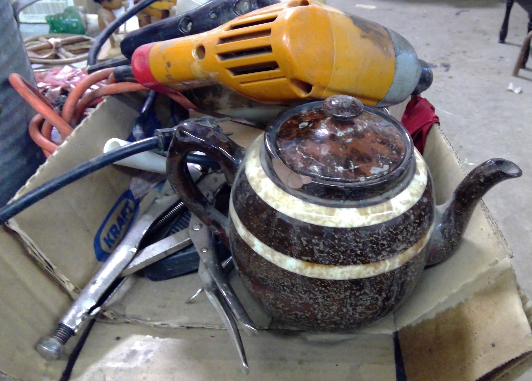 Lot of Box Drills, Vice Grips, Teapot, Etc.