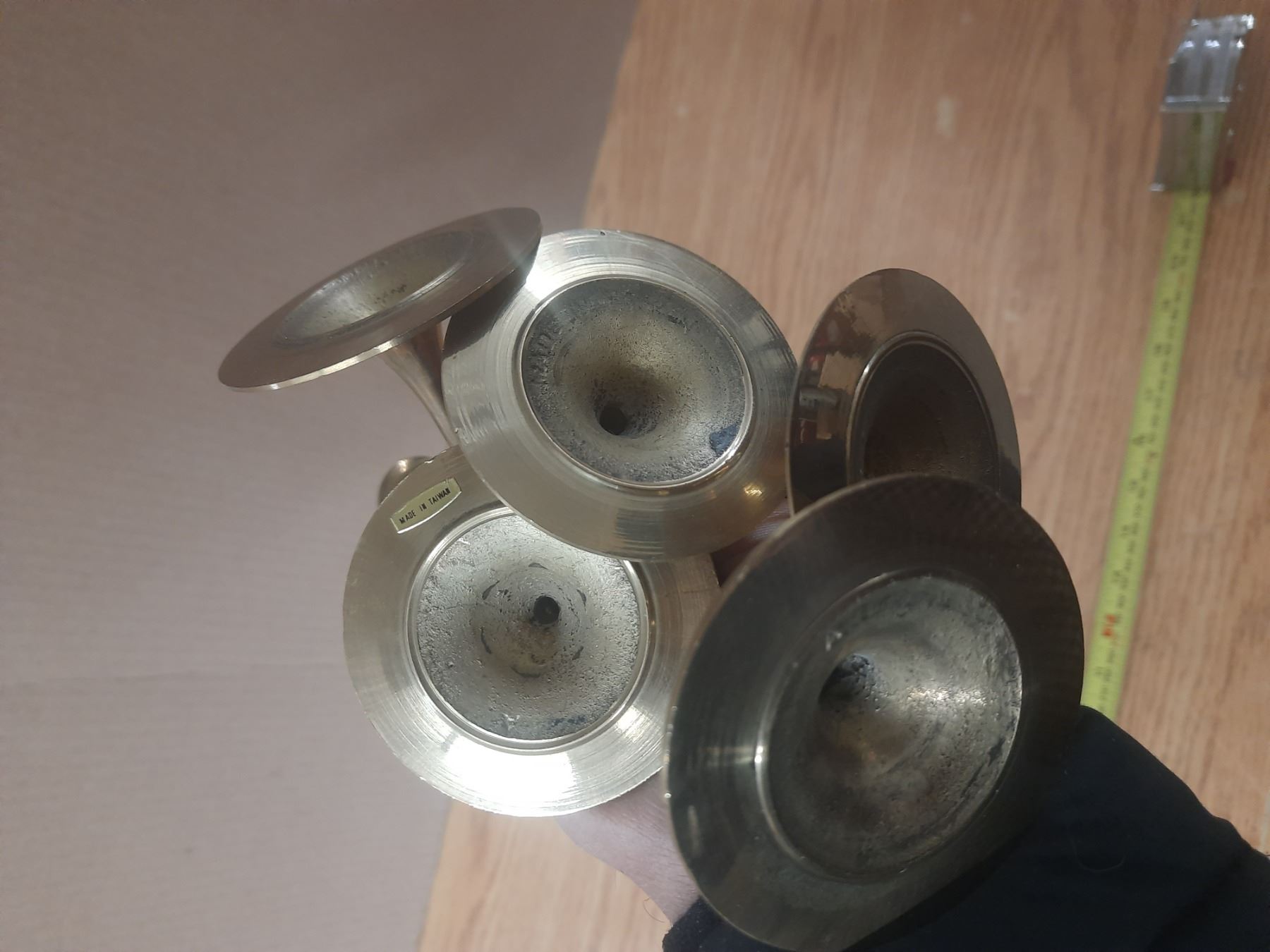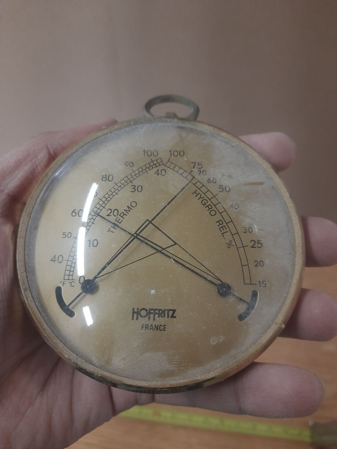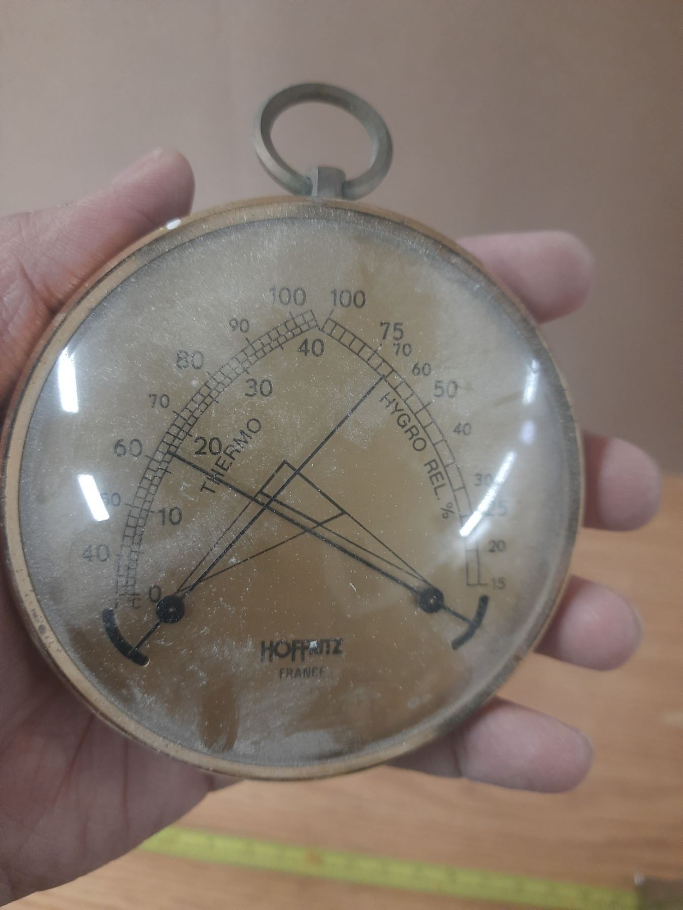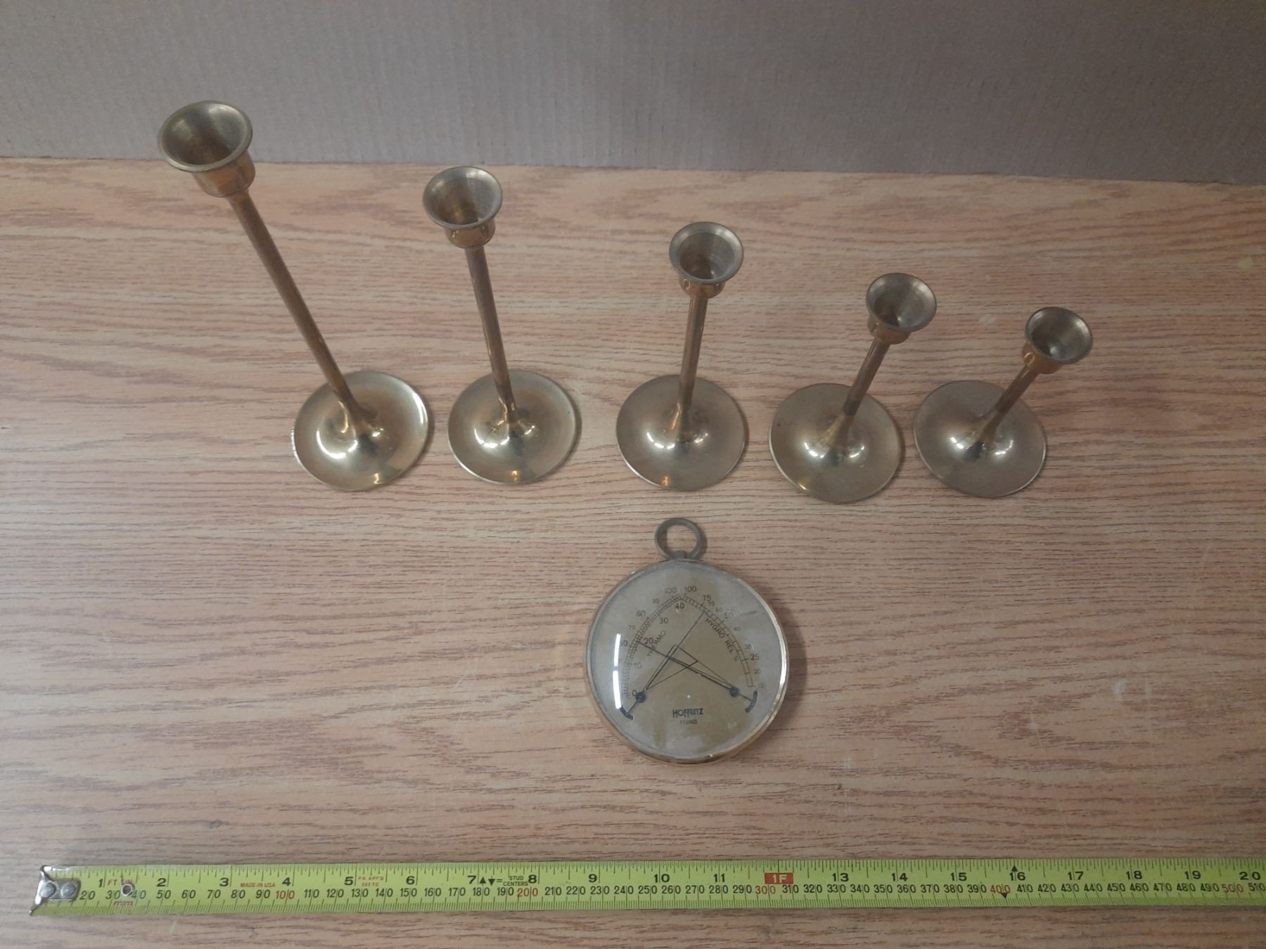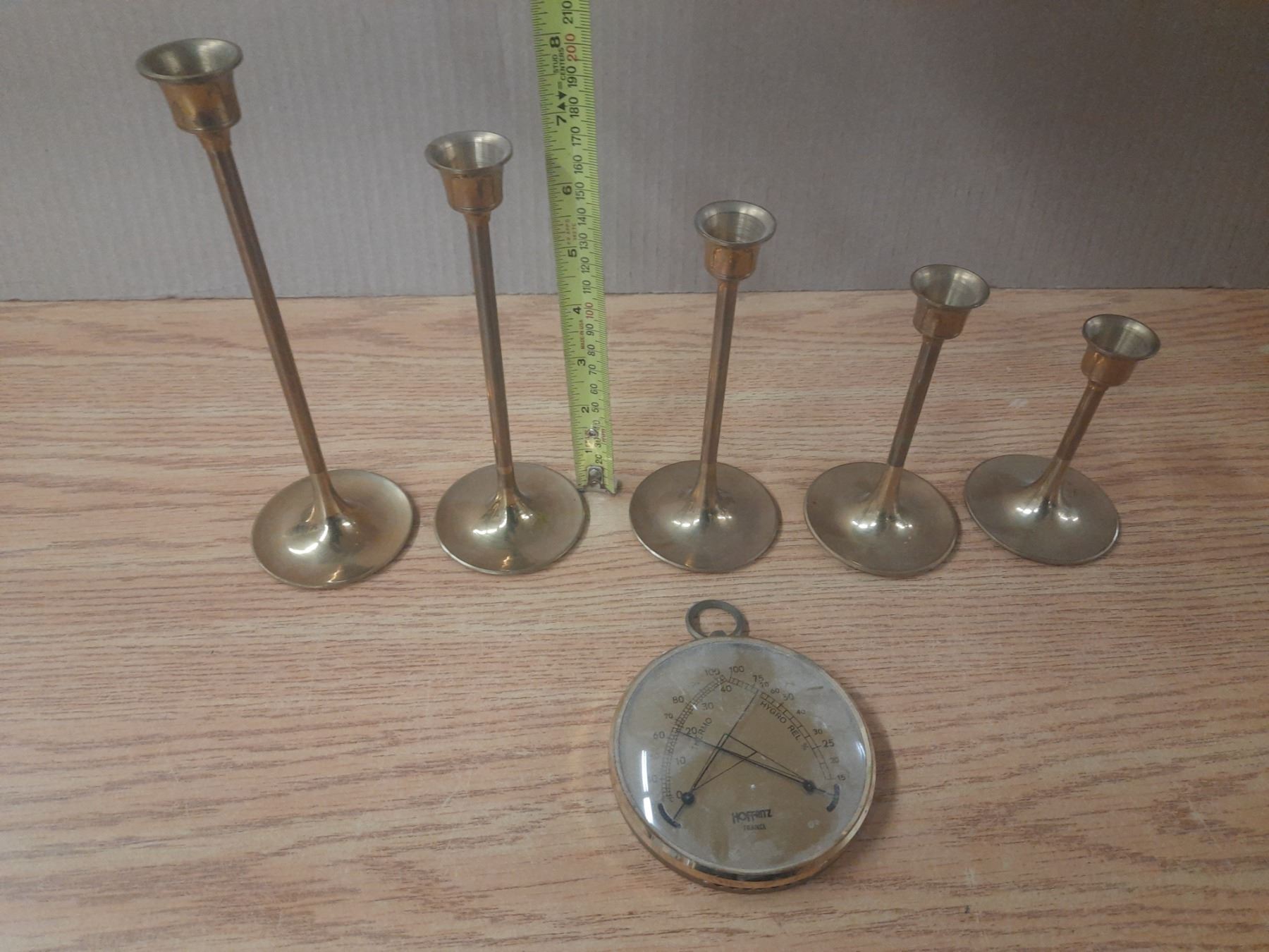 Lot of Brass Candle Holders and Vintage Analog Climate instrument by Hoffritz France.