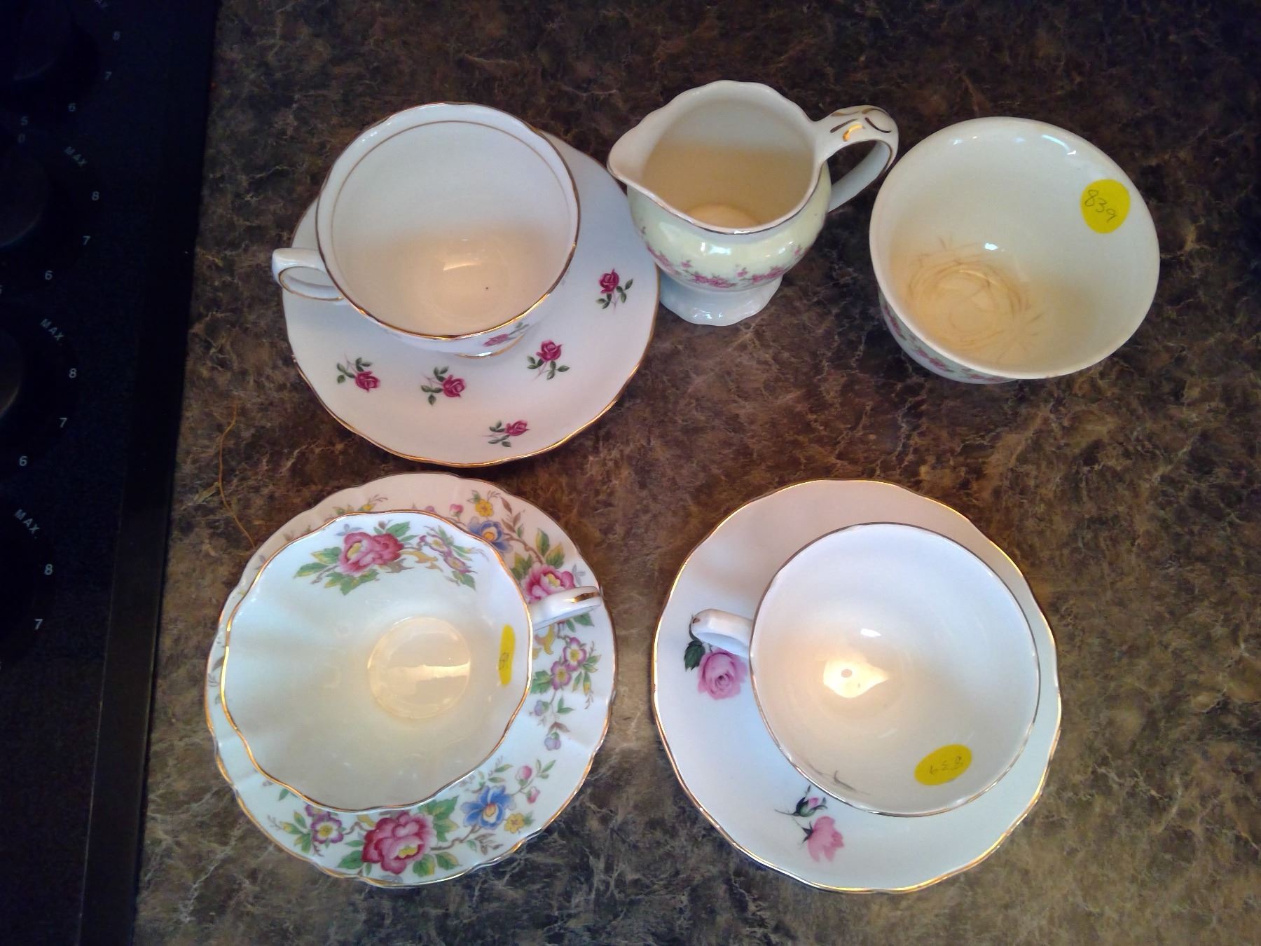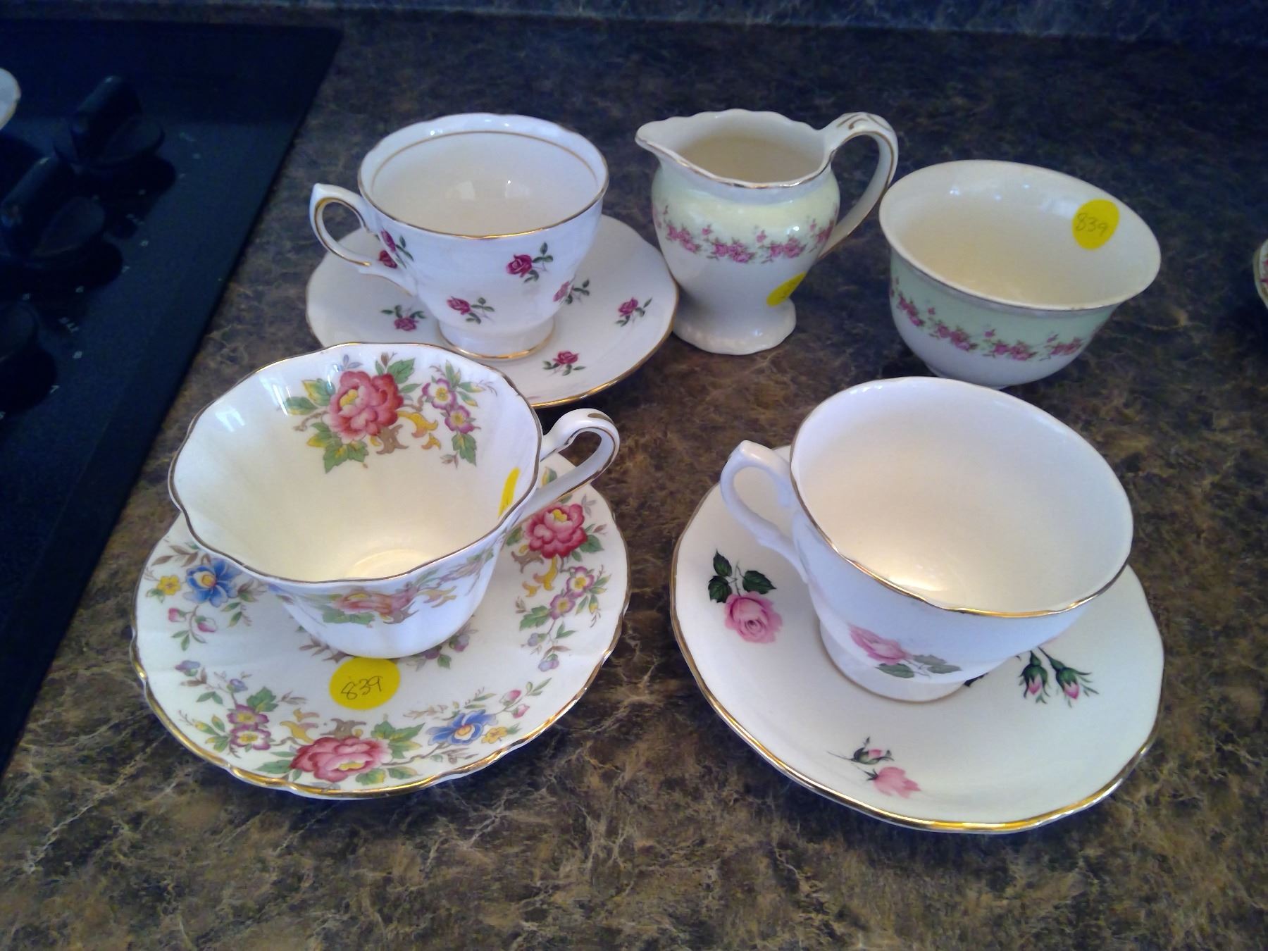 Lot of Chinaware - Teacups, Saucers, Creamer, and Sugar
