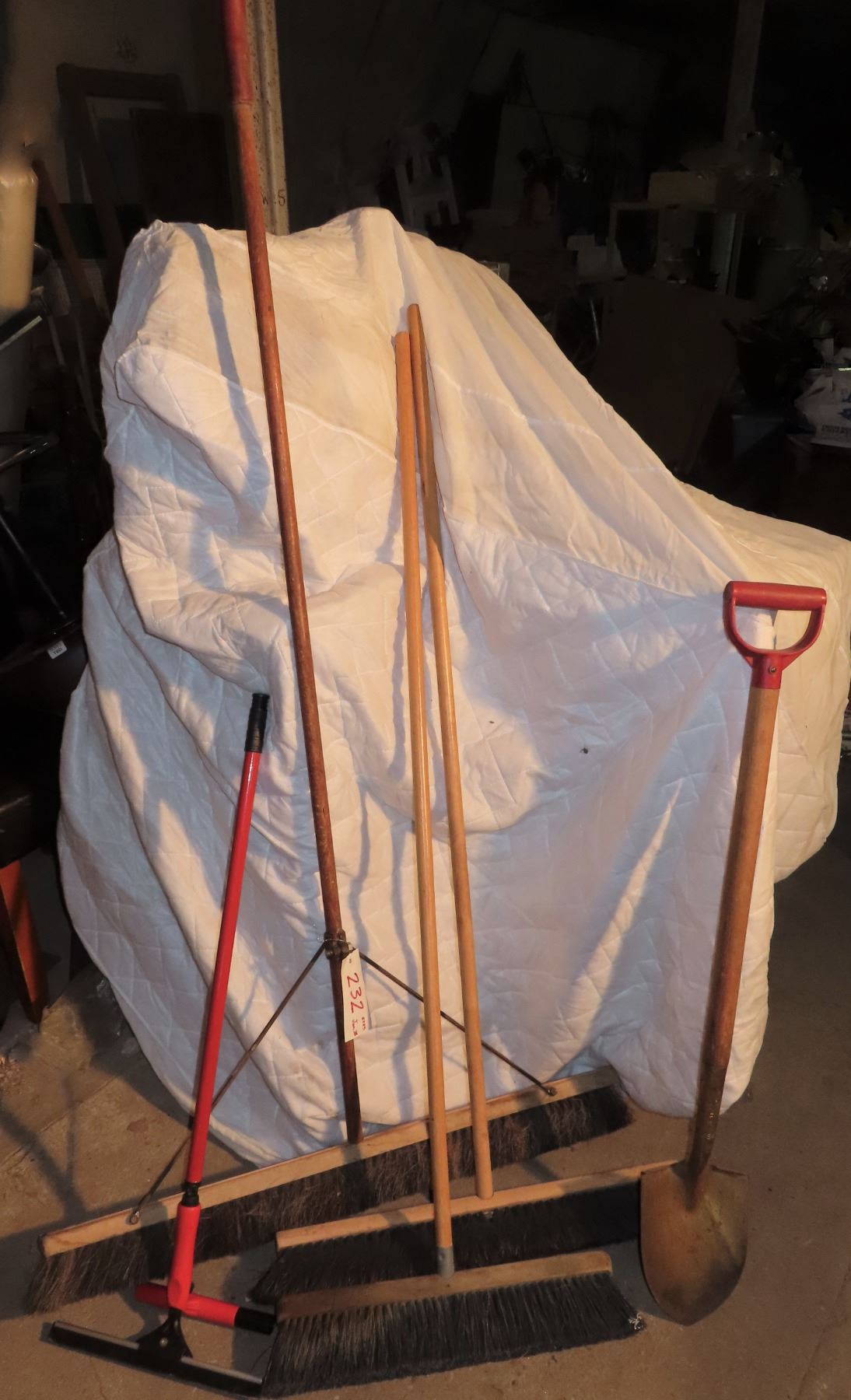 Lot of Cleaning tools (brooms, squeegee, shovel)