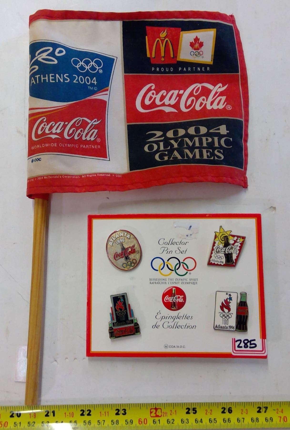 Lot of Coca Cola Pins & Flag - 2004 Olympic Games