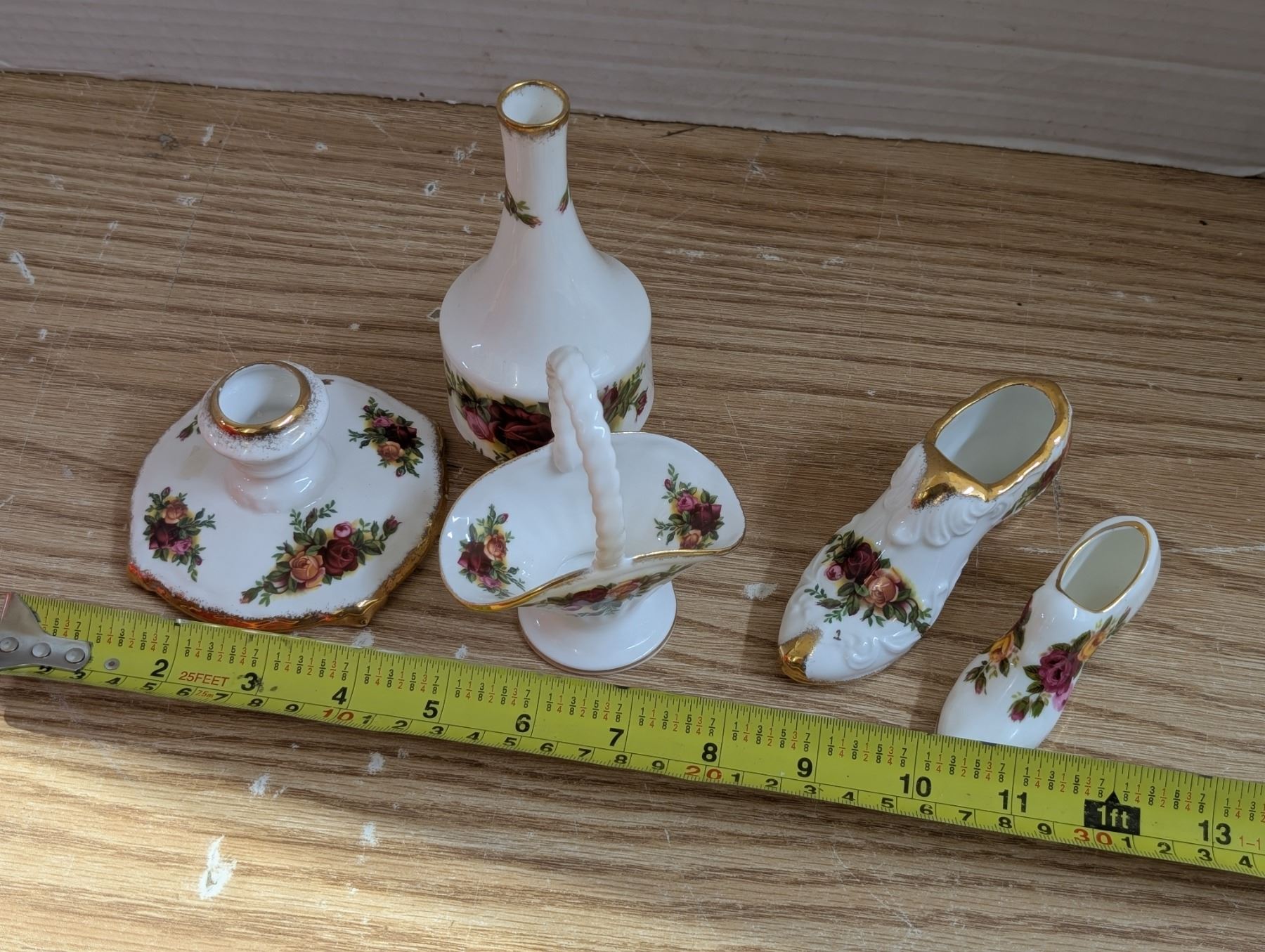 Lot of Country Rose Vintage Bone China set (1) Ashleydale (2) Shoes, Vase, Basket, and Etc.