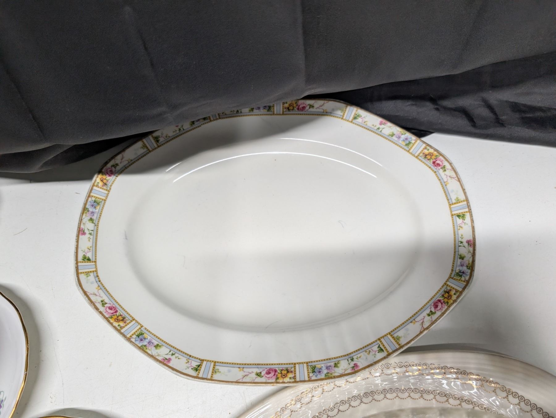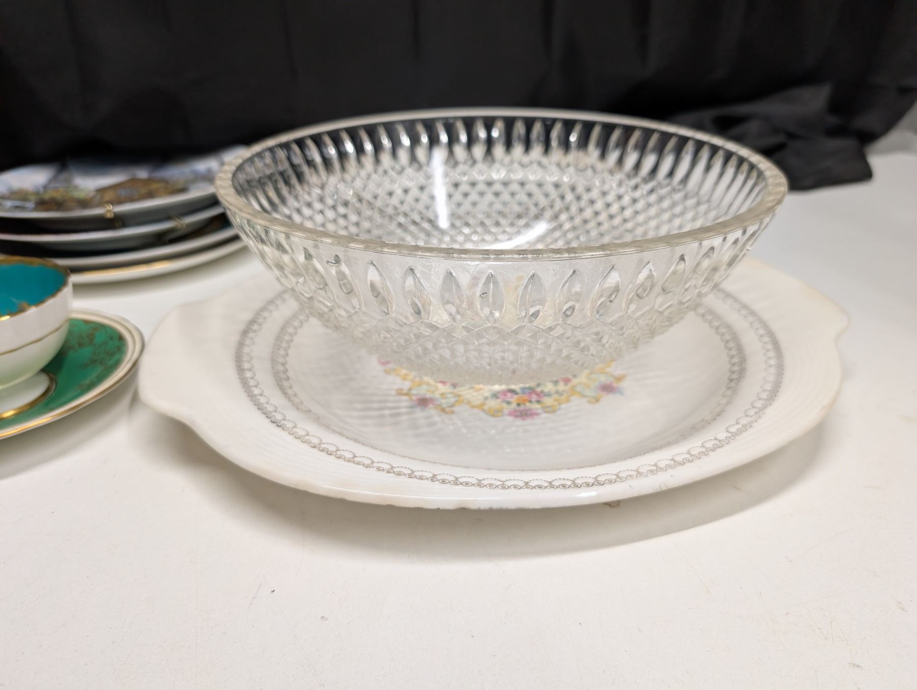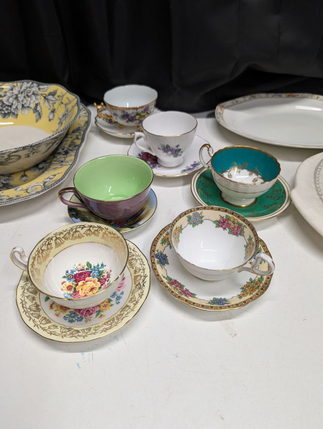Lot of Dinnerware (Serving Trays (porcelain) Tea Cups, Saucers, bowls, and etc.)