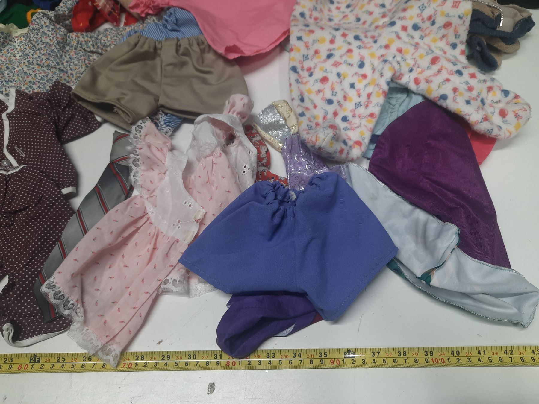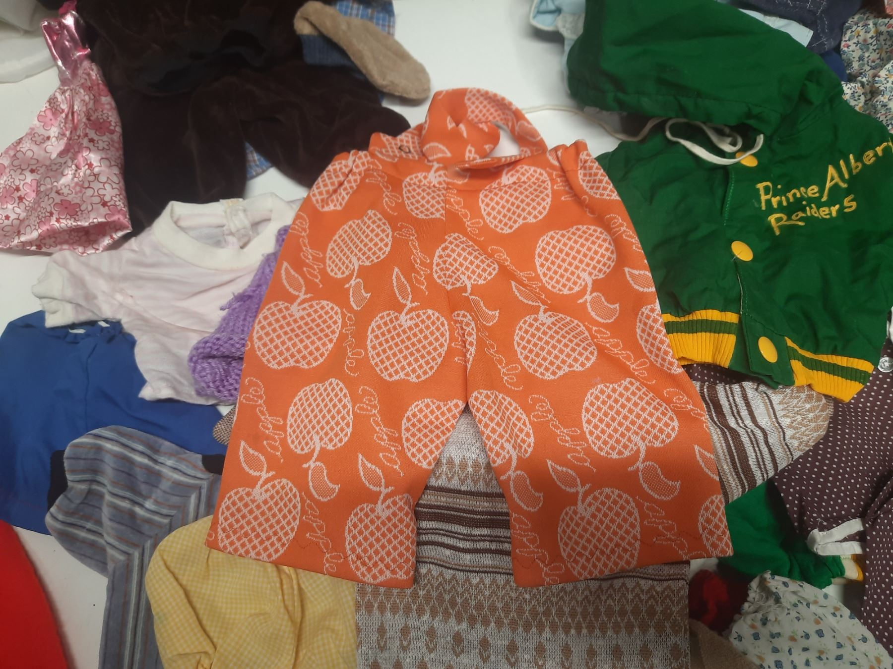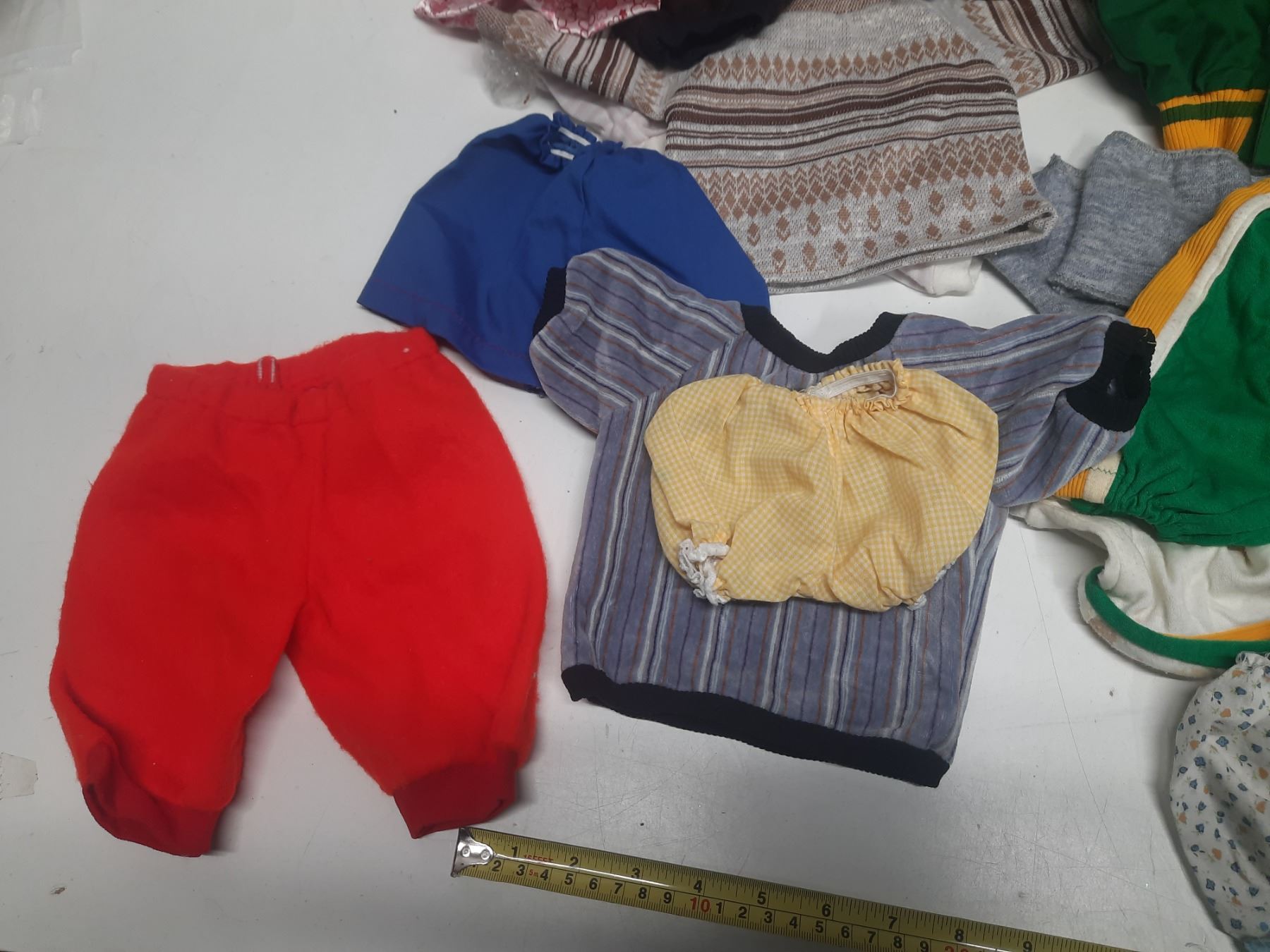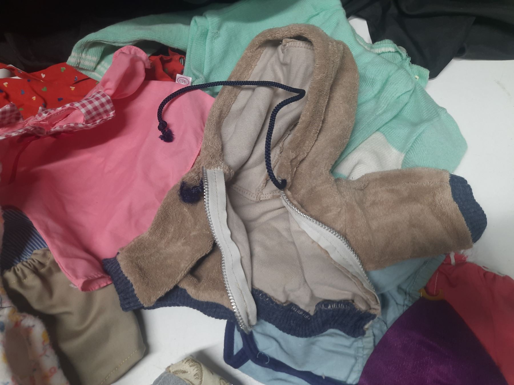 Lot of Doll Clothes of Different Sizes.