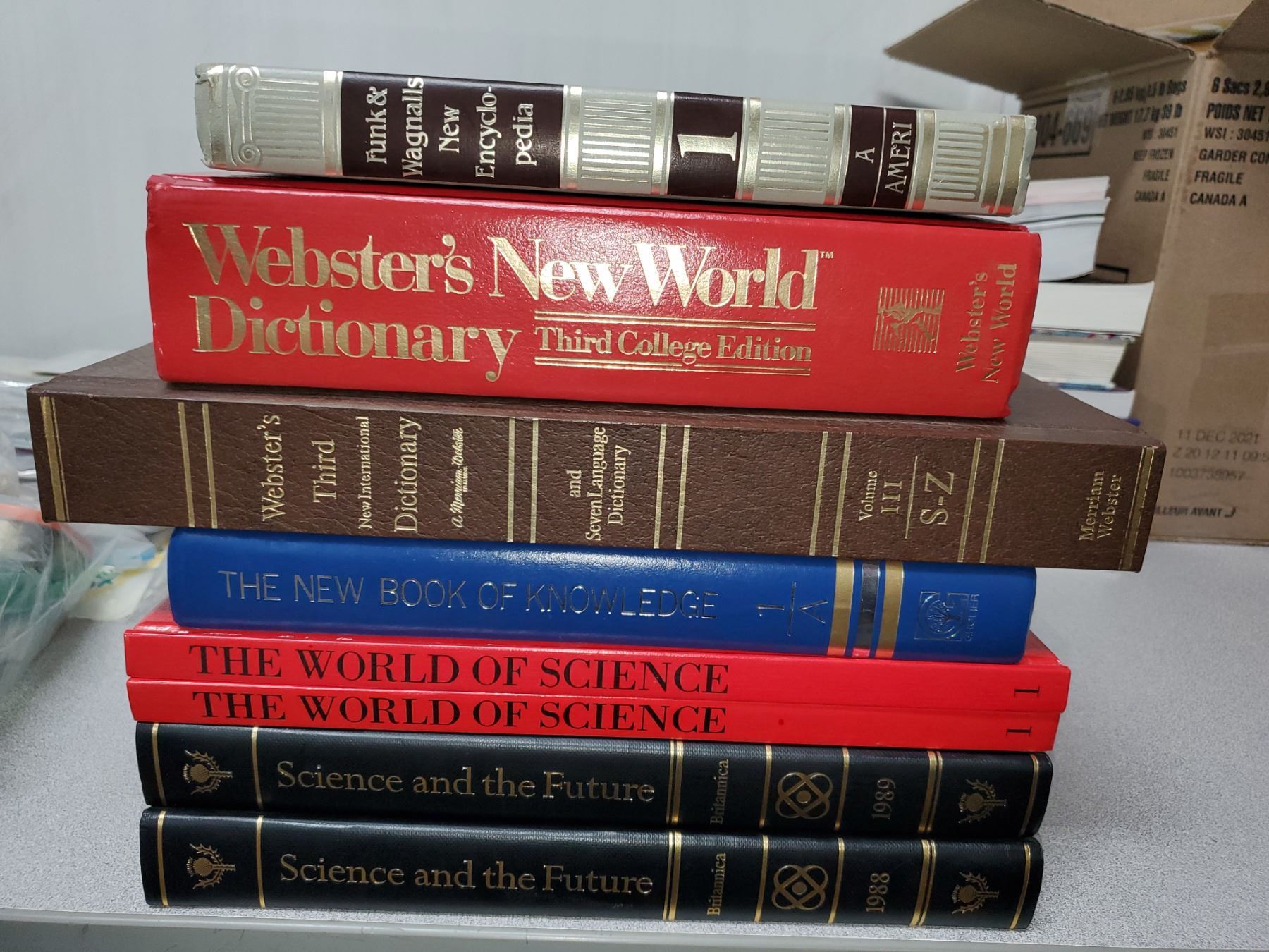 Lot of Encyclopedias, Websters Dictionary, Science Britannicas