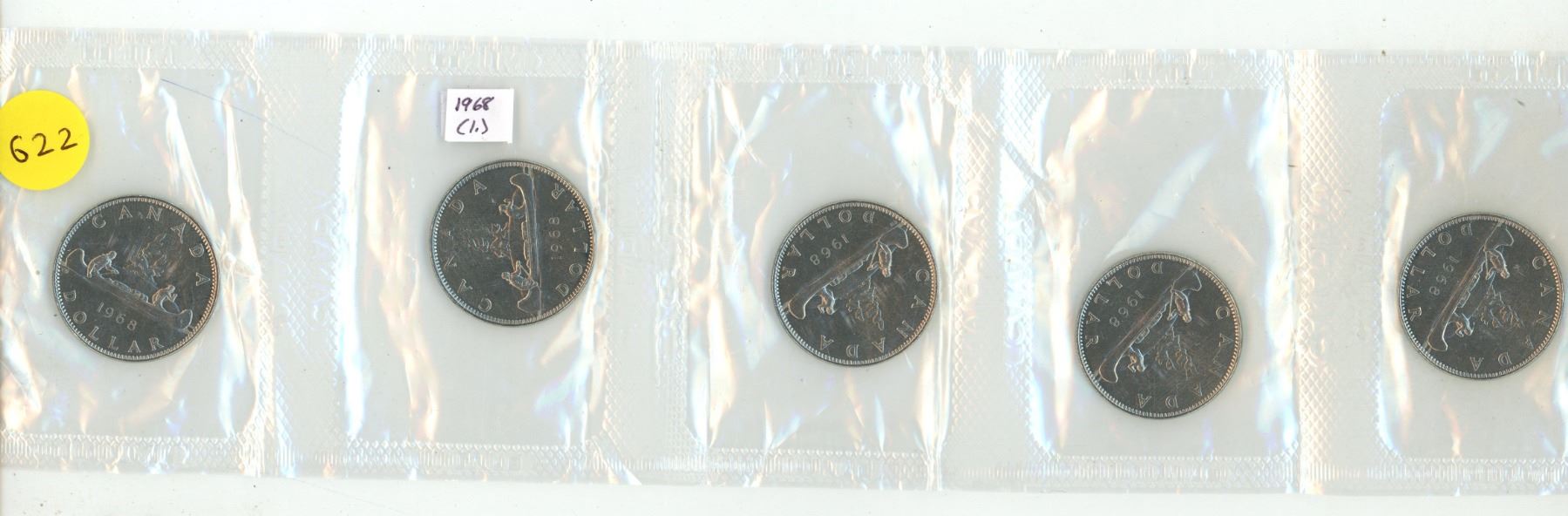 Lot of Five 1968 Canada $1 in pylofilm (1.)