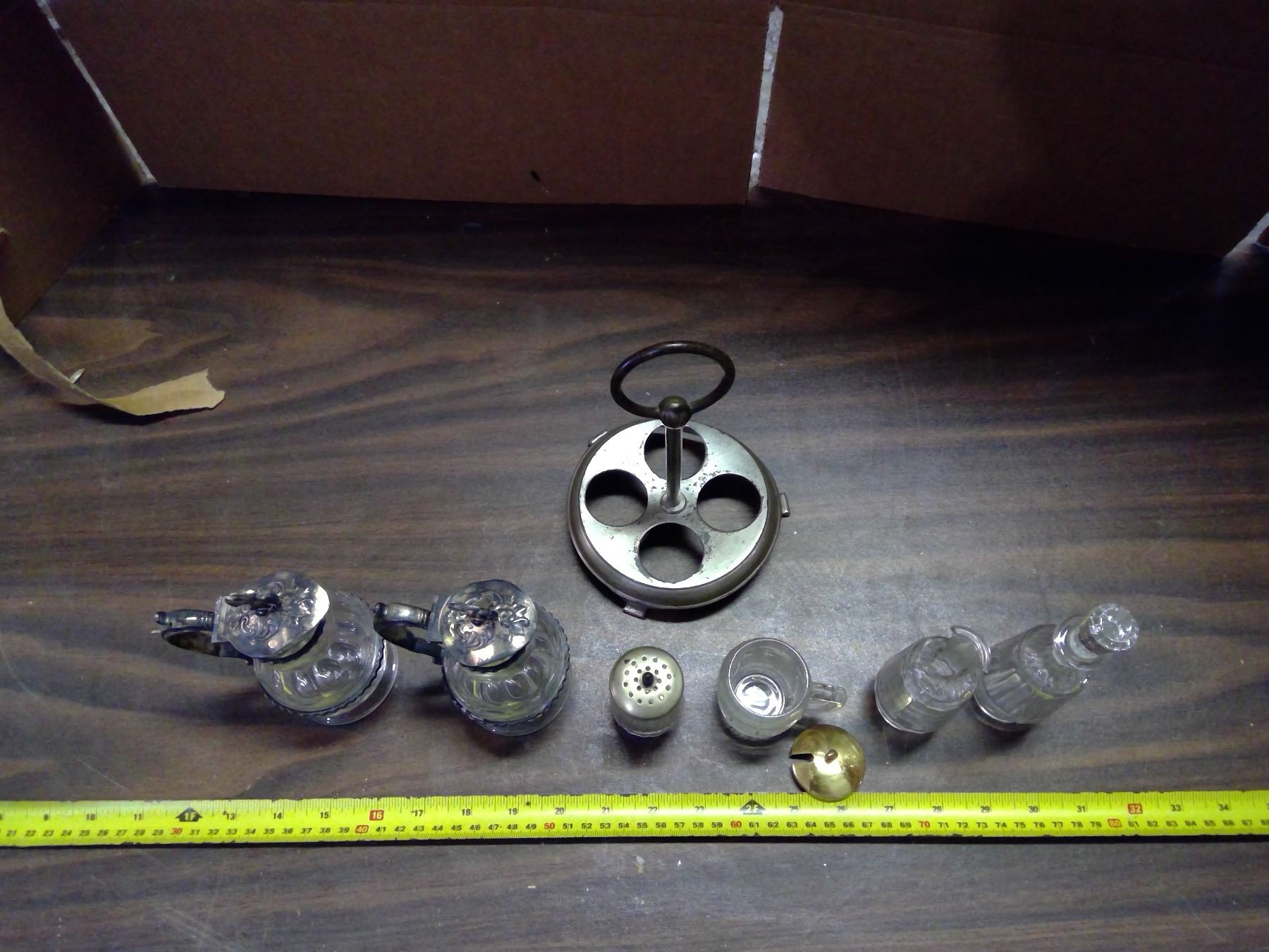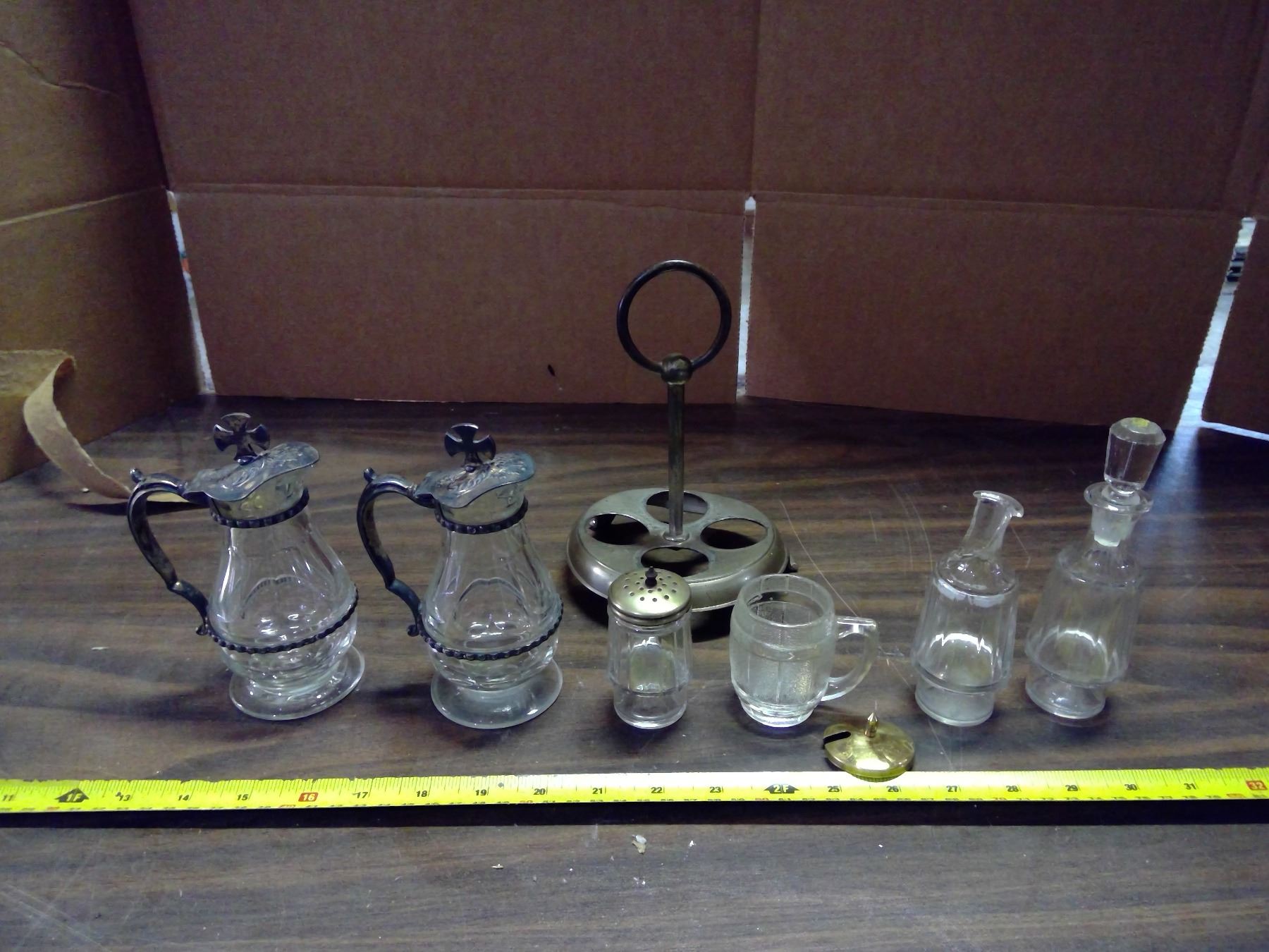 Lot of Glass/Silver Serving Items - Creamer, Salt, etc.