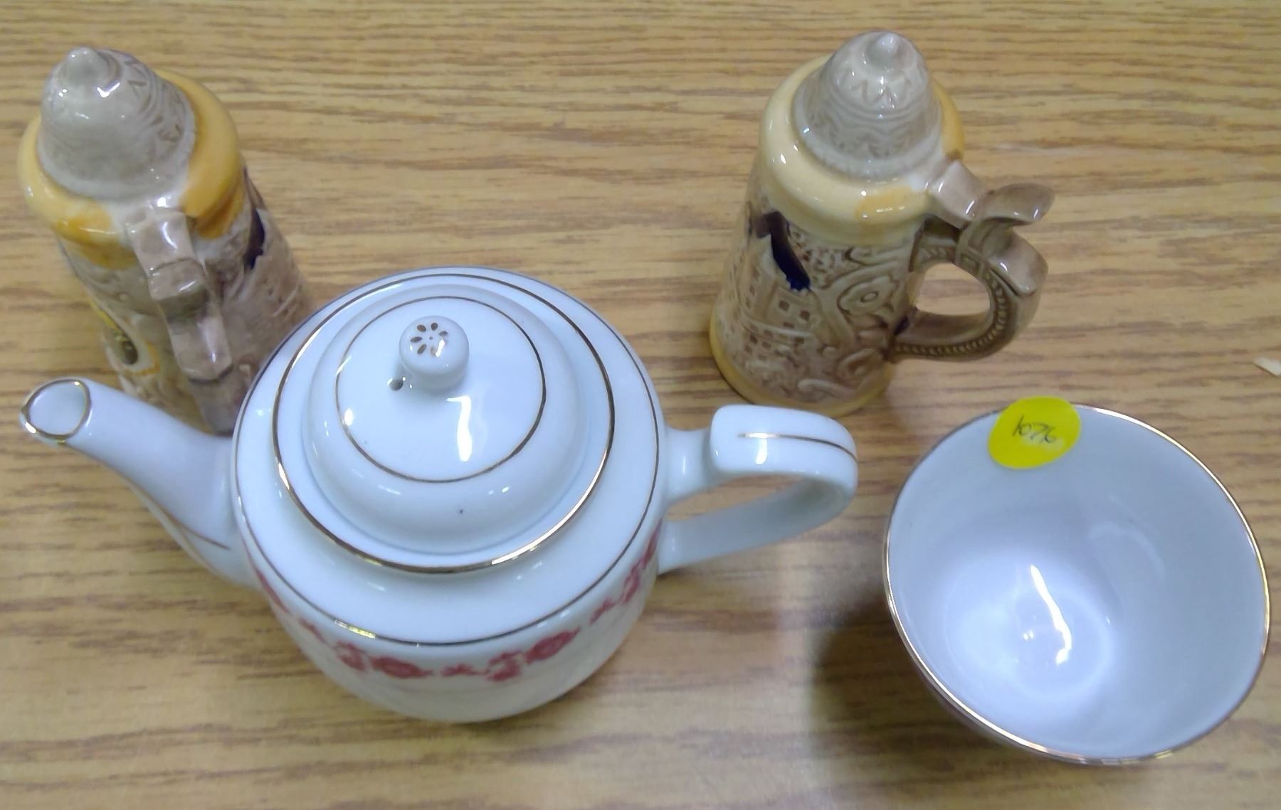 Lot of Glassware - S&P Shakers, Teapot & Cup