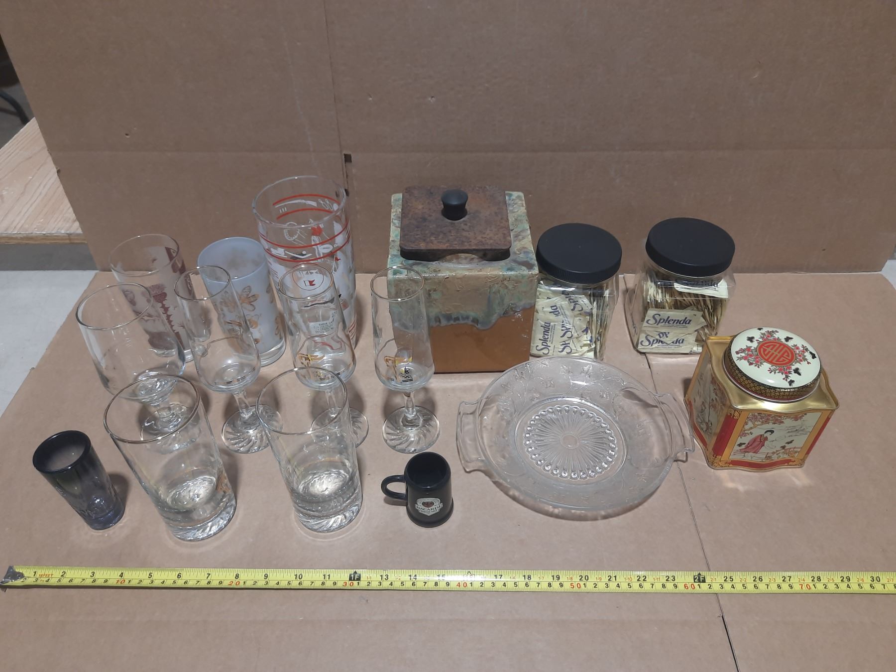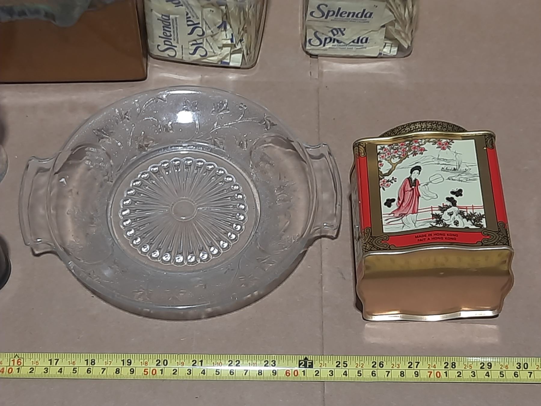 Lot of Glassware, Splenda Container, Tin, Misc. Items, etc.