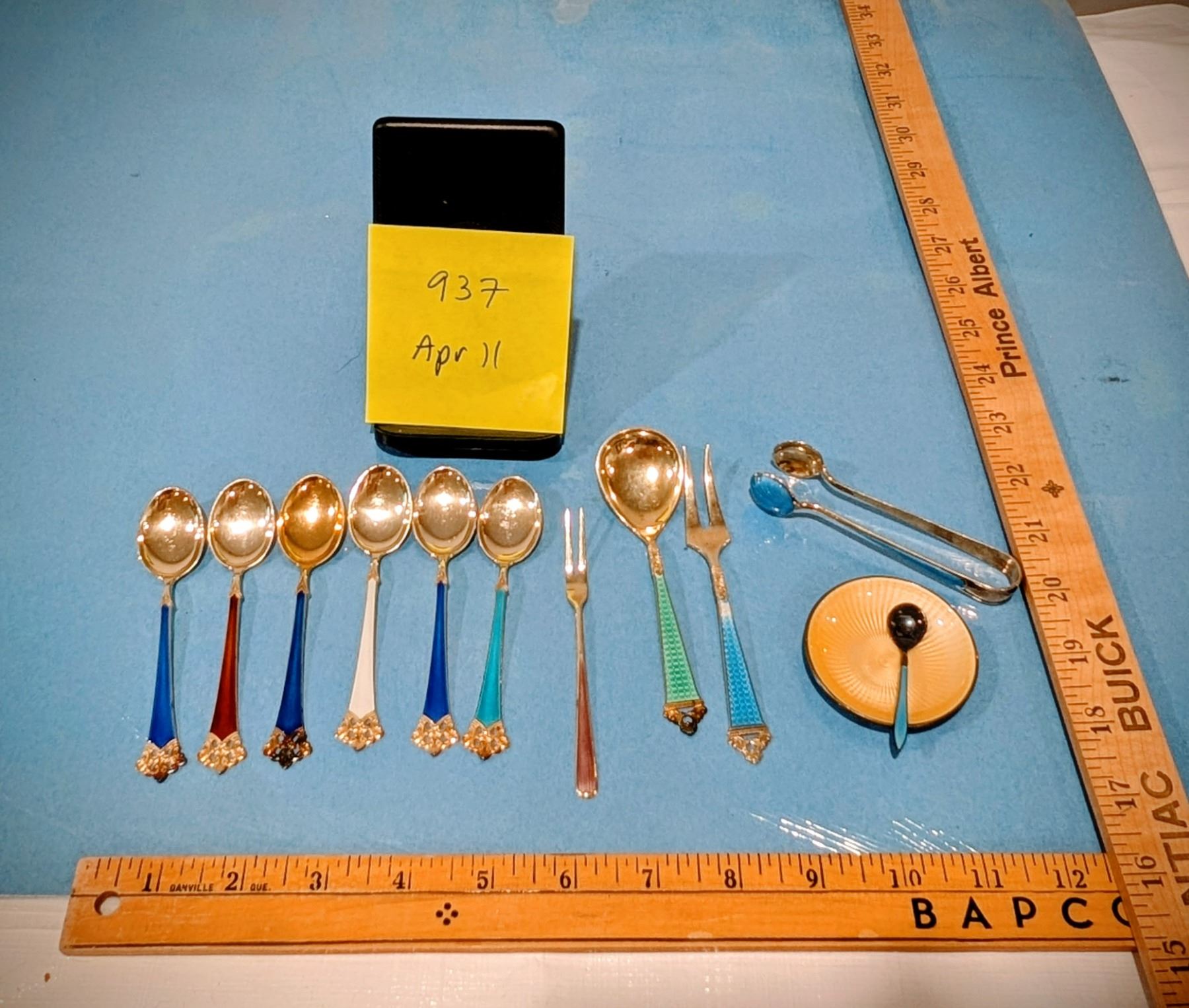 Lot of Golden and Enamel Tableware. Marked Sterling...?... Norway