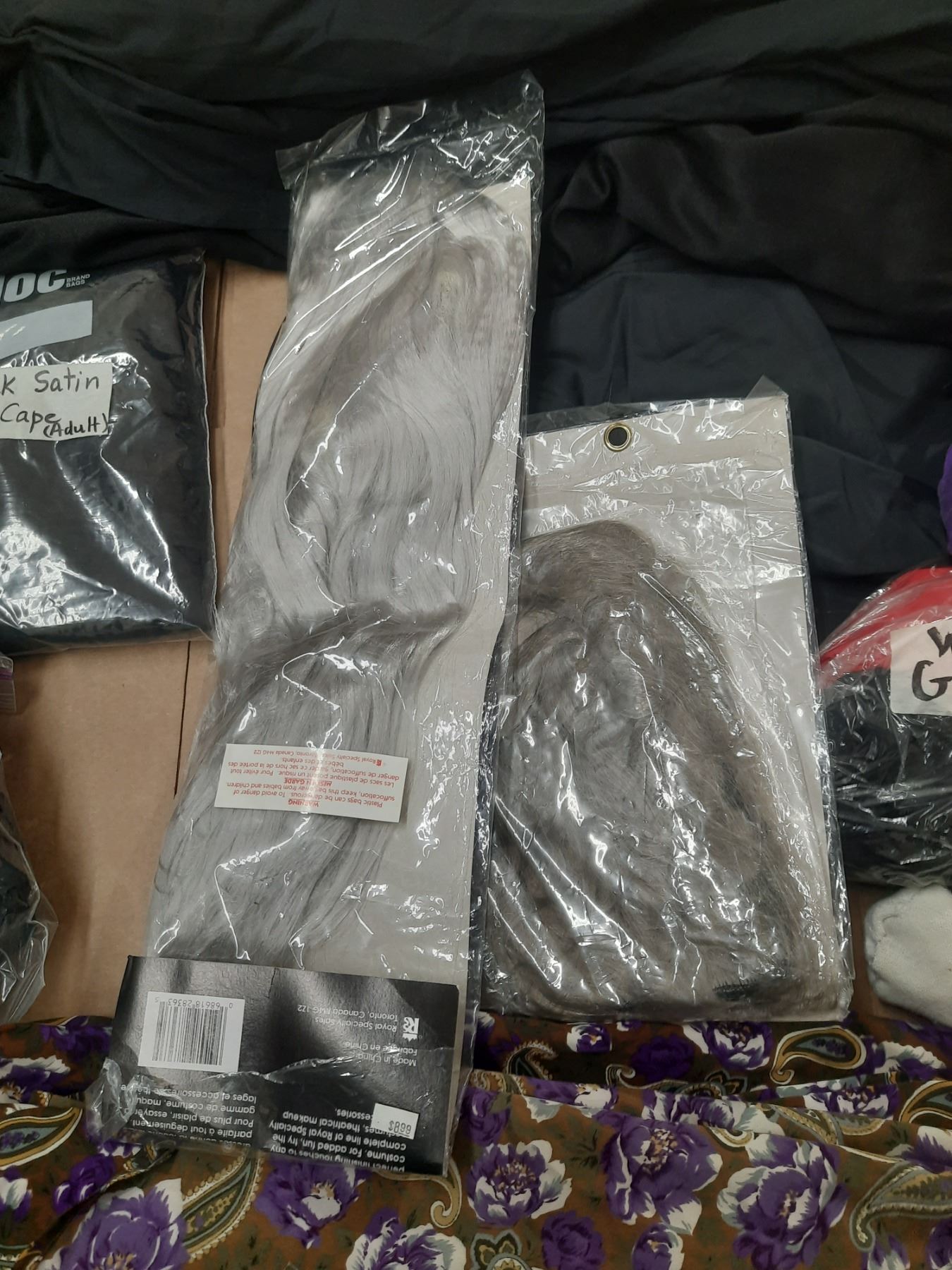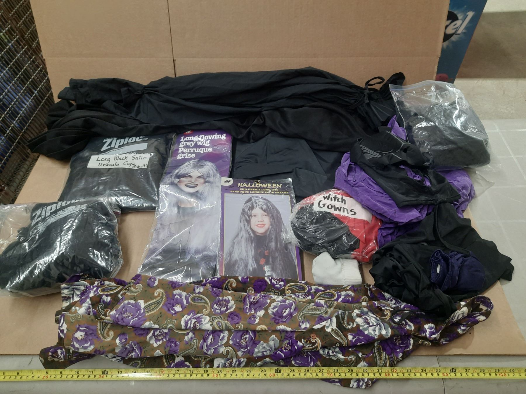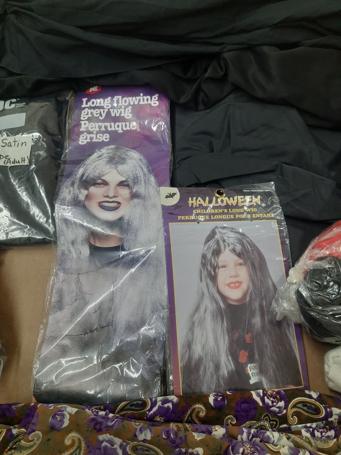 Lot of Halloween Costumes. (It Includes Long Flowing Wigs, Handgloves, Black Hooded Costume (Adult),