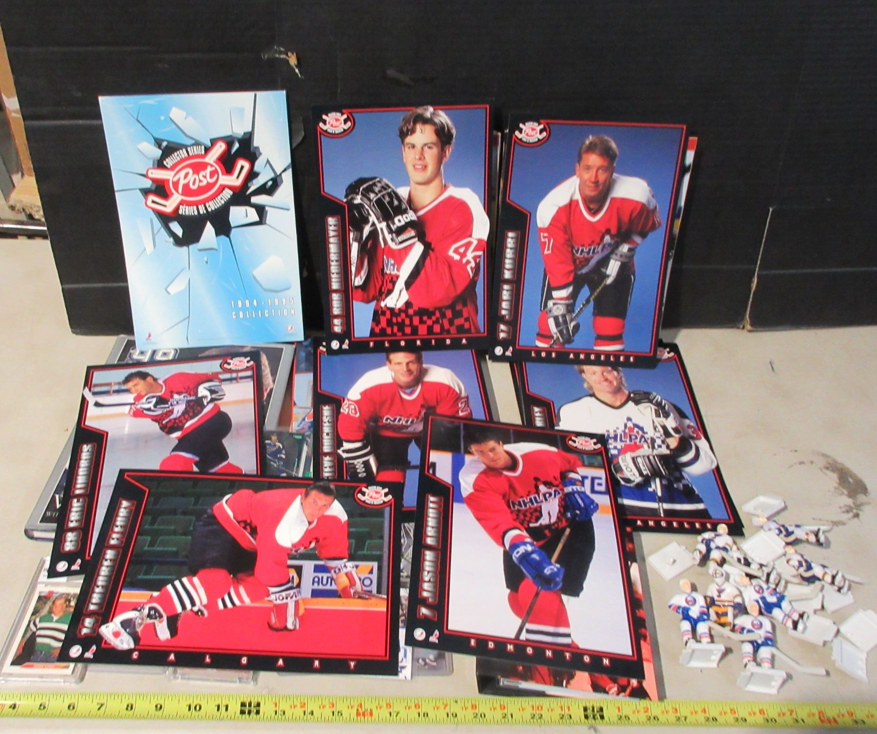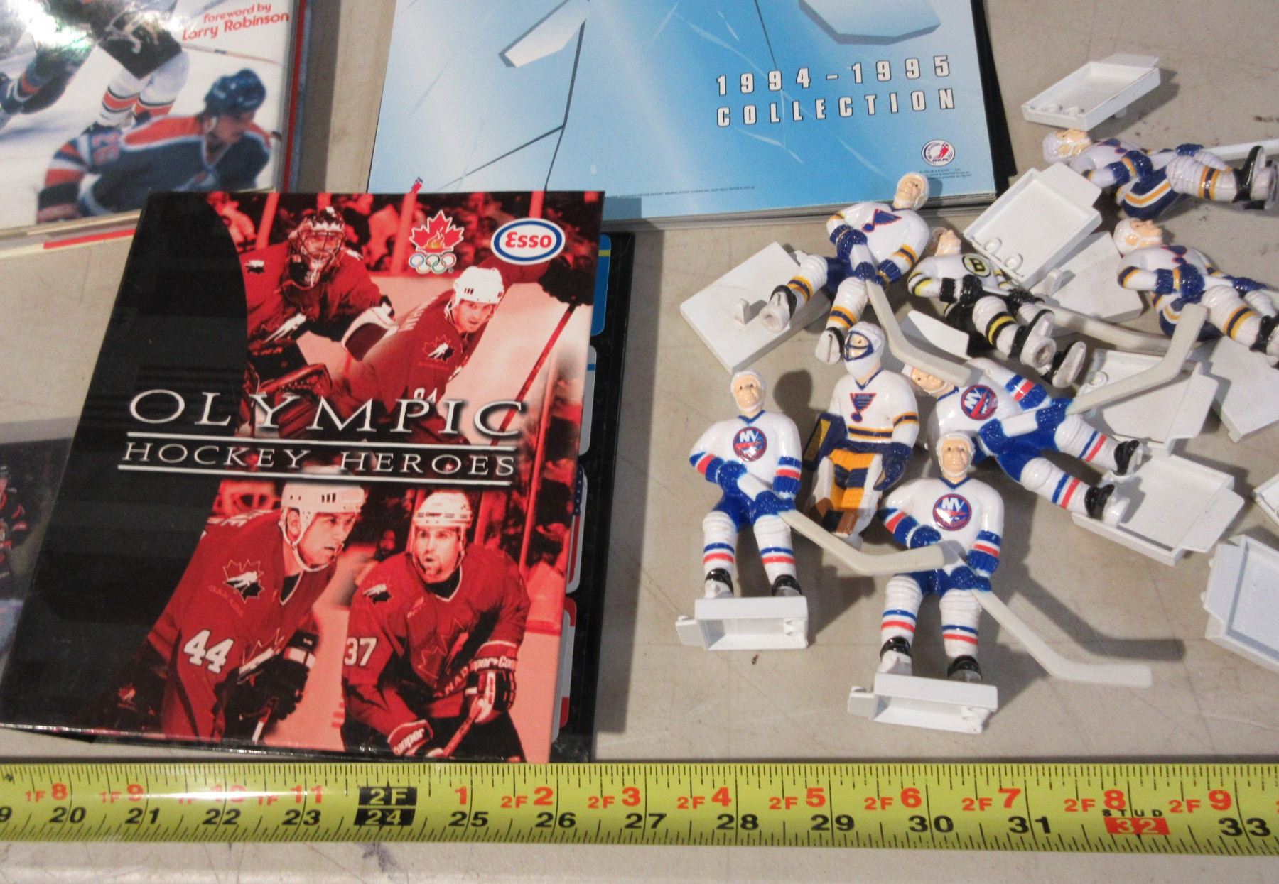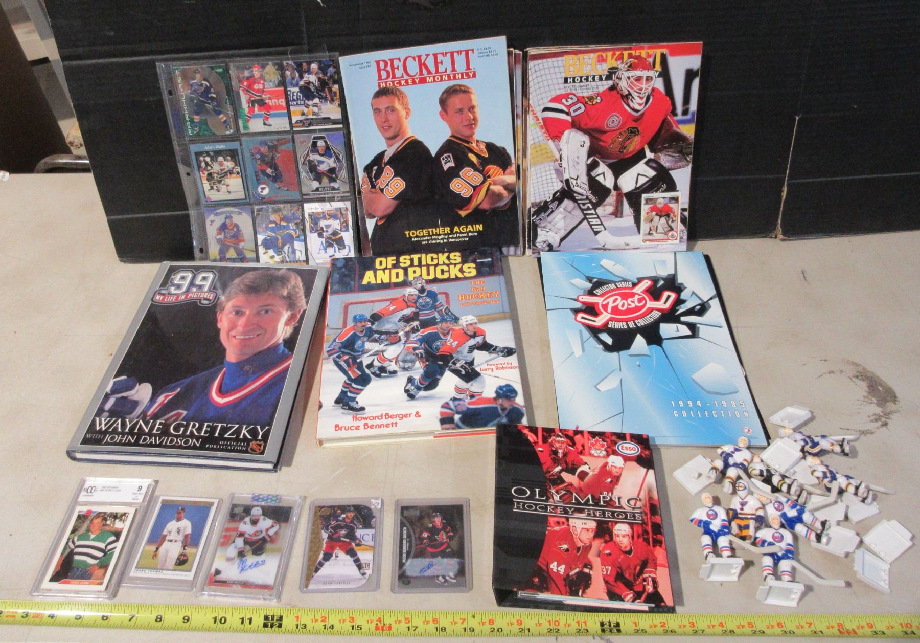 Lot of Hockey Cards, Hockey Magazines, Olympic Hockey Heroes, 1994-1995 Collectibles Cards (Card Size-12") and Small Hockey Player Figures.