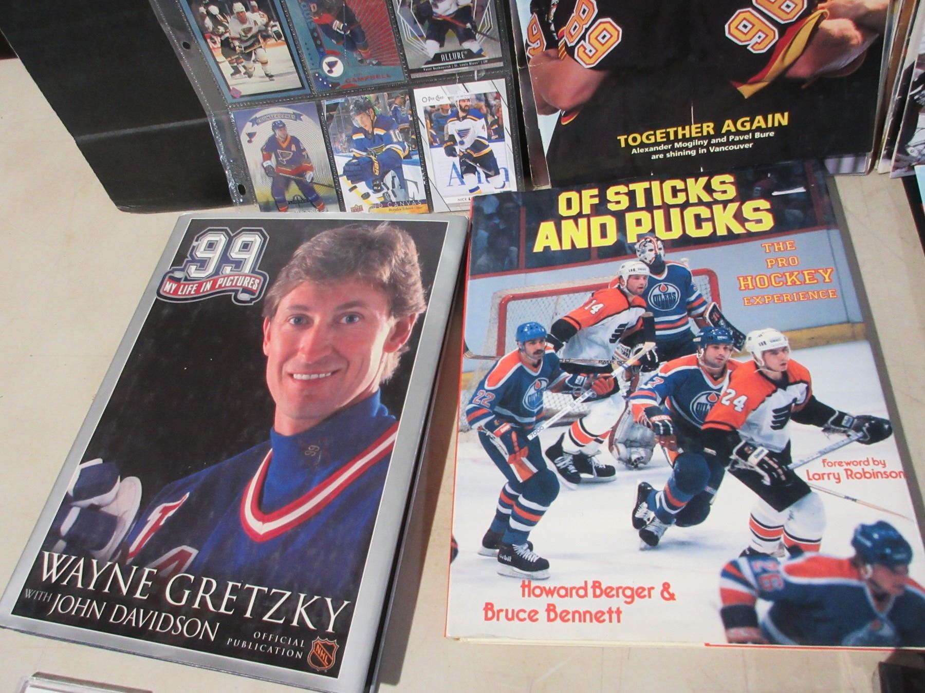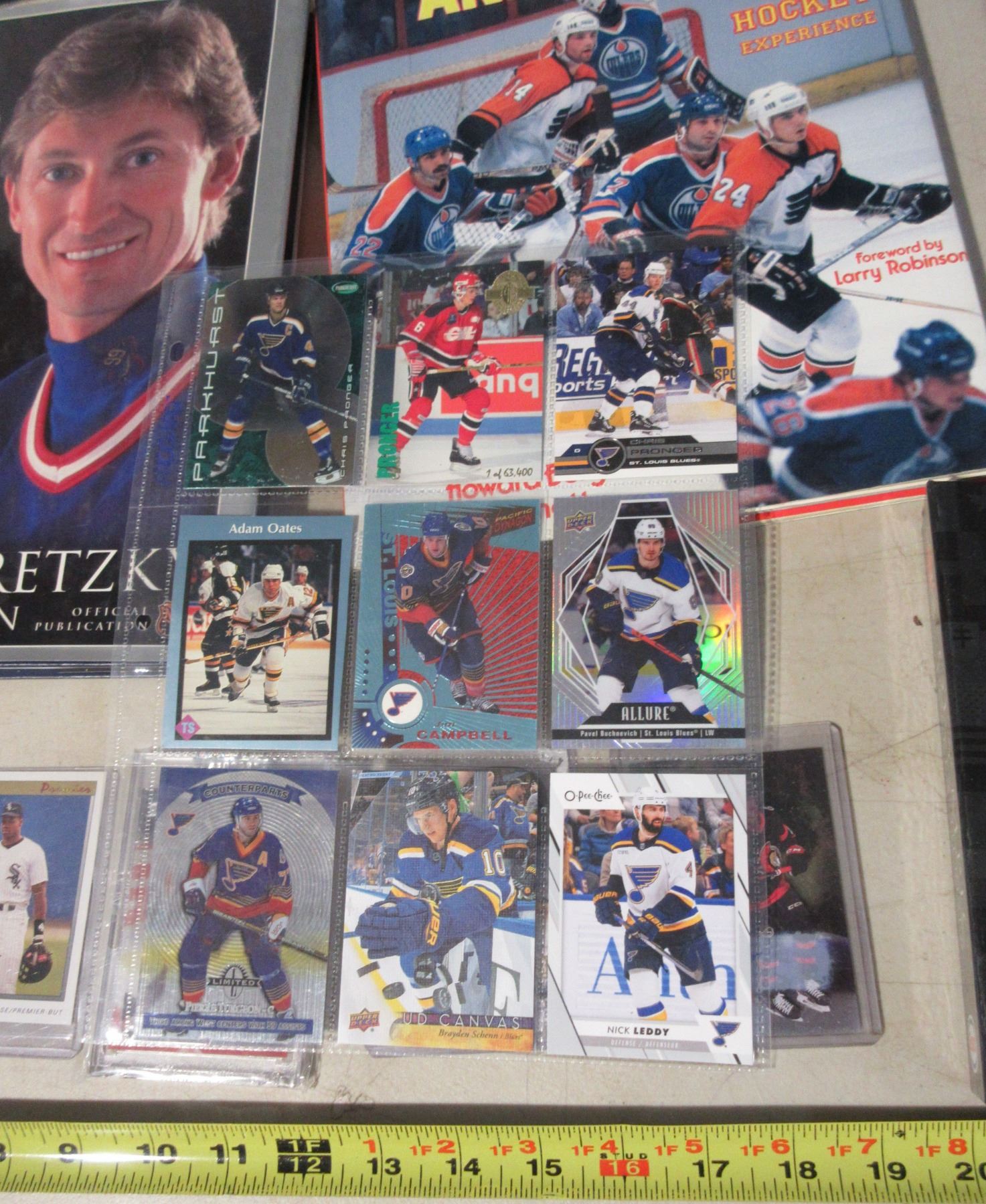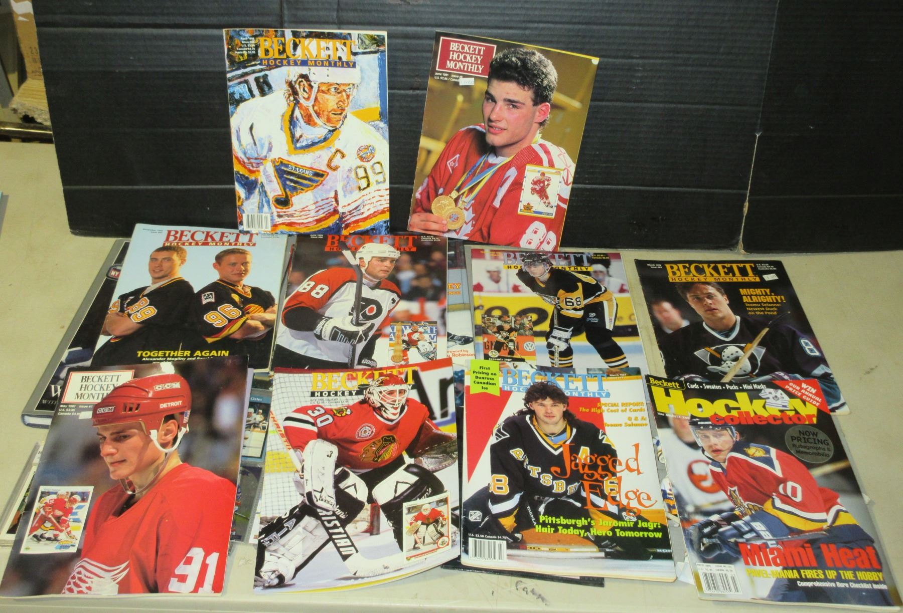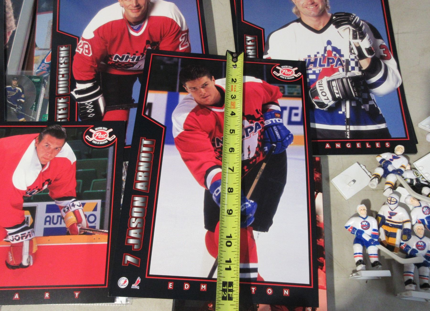 Lot of Hockey Cards, Hockey Magazines, Olympic Hockey Heroes, 1994-1995 Collectibles Cards (Card Size-12") and Small Hockey Player Figures.