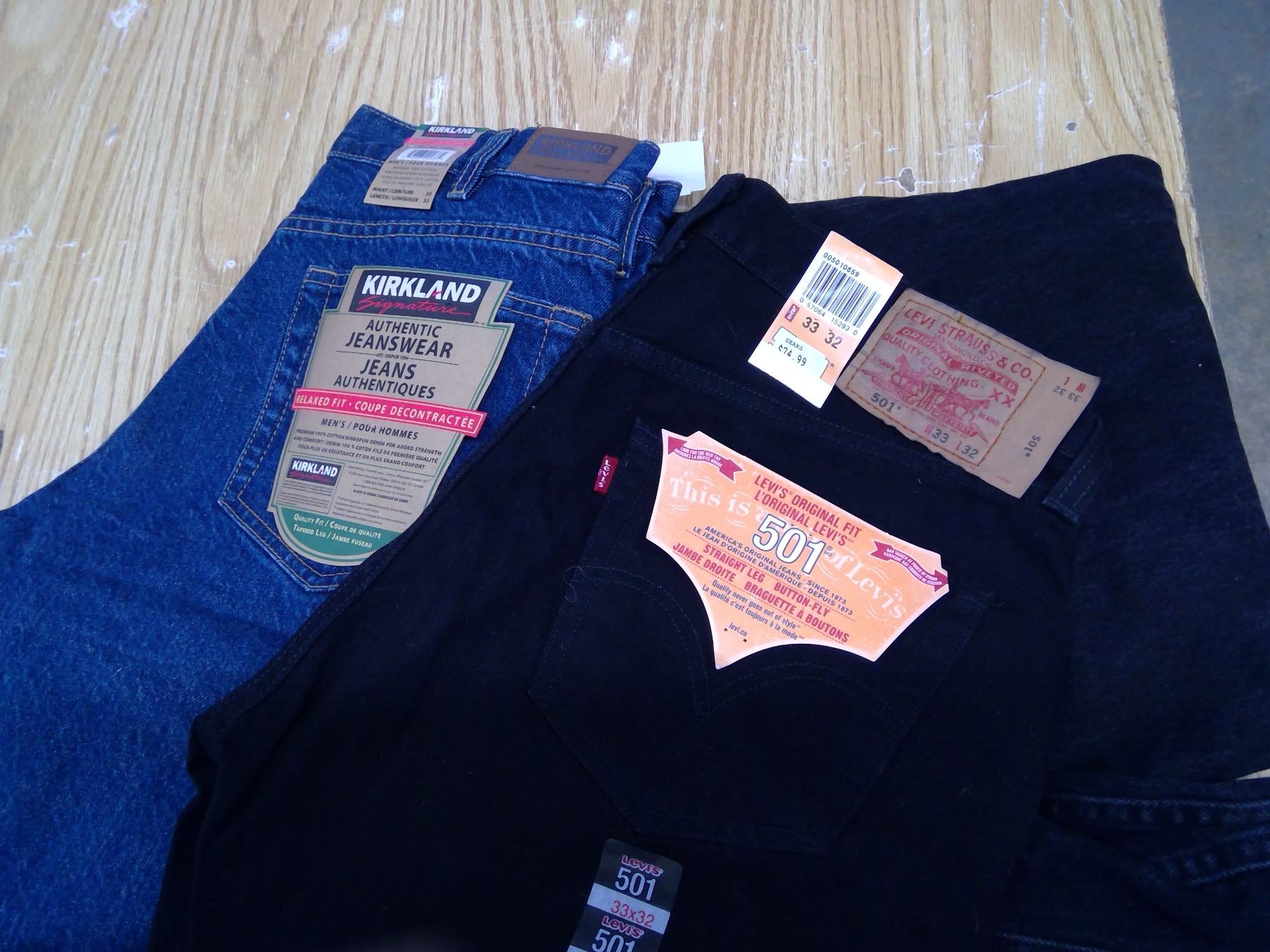 Lot of Jeans Pants (2 are new Kirkland, Levi's Original) W-33 X 32L