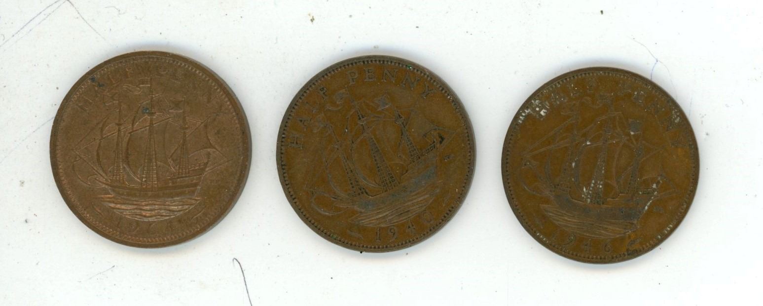 Lot of King George VI Half Pennies; 1940, '46, '64